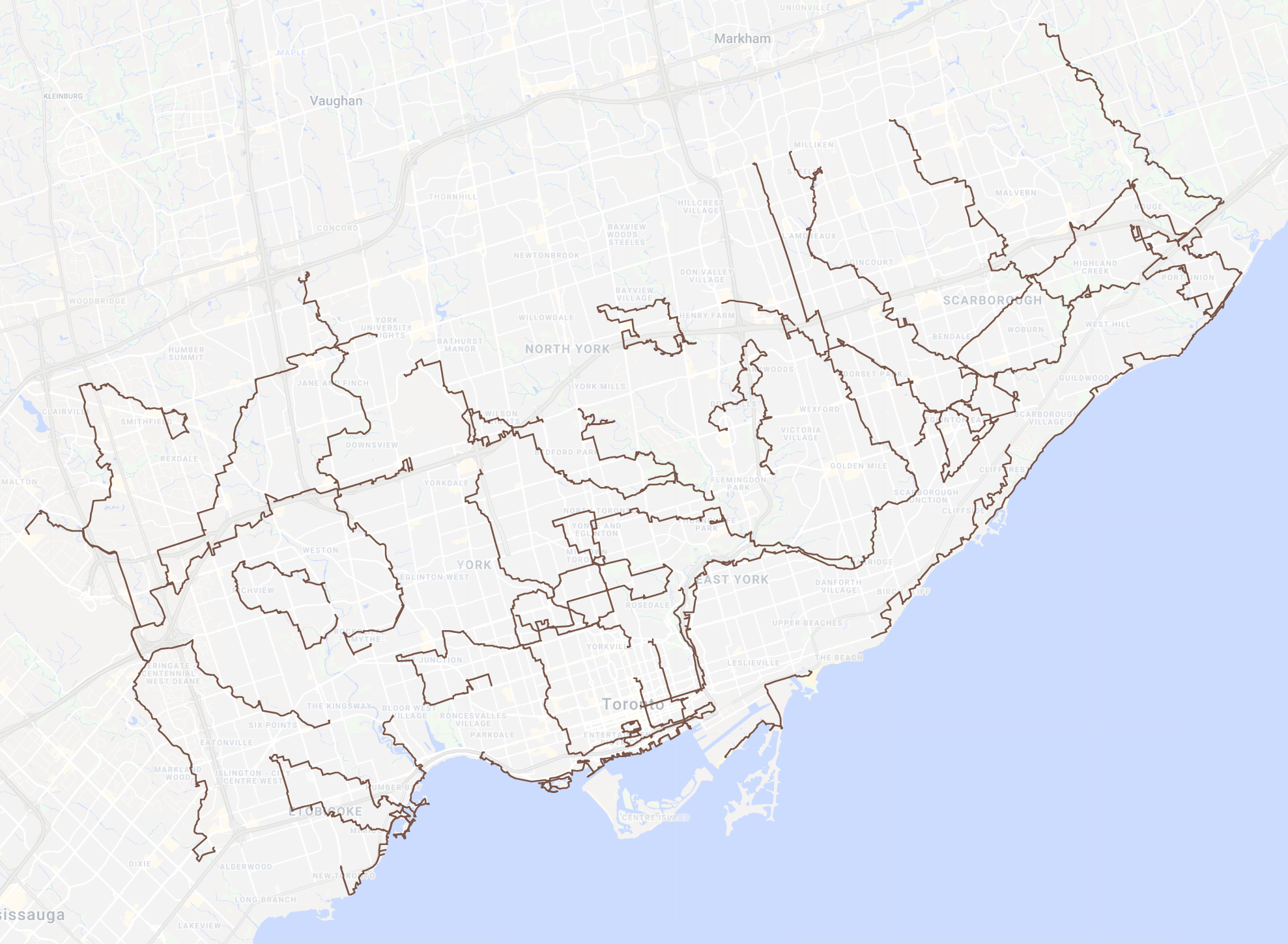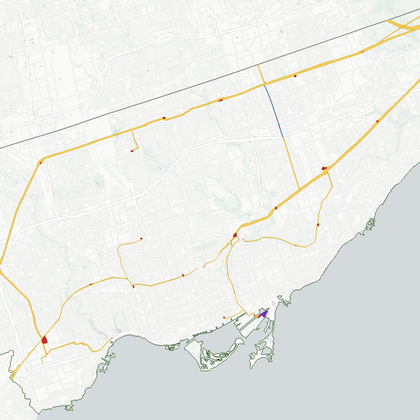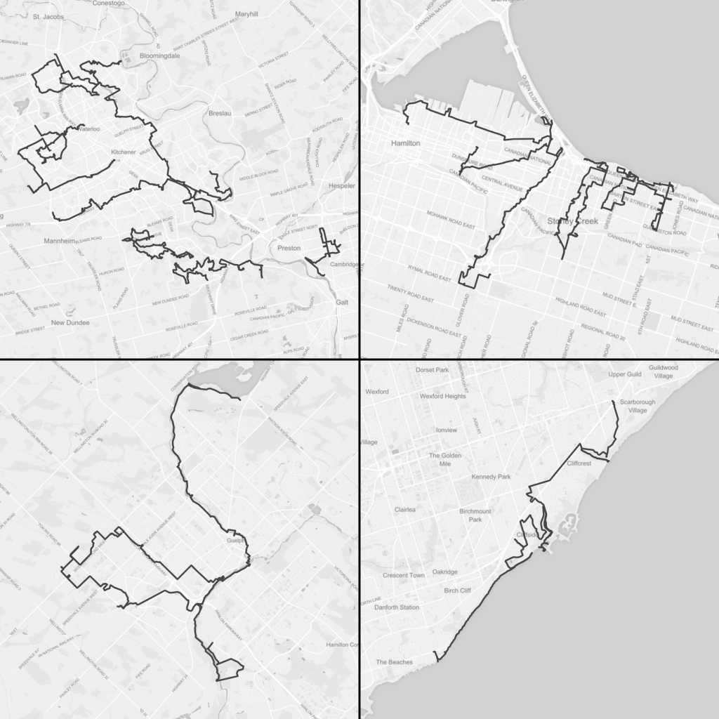 I converted three more projects into GIS: Guelph watersheds, Toronto hydro corridors, and the Toronto shoreline. Maybe it shouldn’t, but it always surprises me how close my hand-drawn data was to more precise GIS lengths and areas.