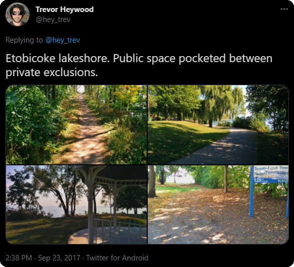 Something happened in the latter half of 2017. I took a walk along Etobicoke’s shoreline, and noticed how public access along it was very fragmented. I wondered how it compared to other parts of Toronto, like downtown, the Port Lands and Scarborough.