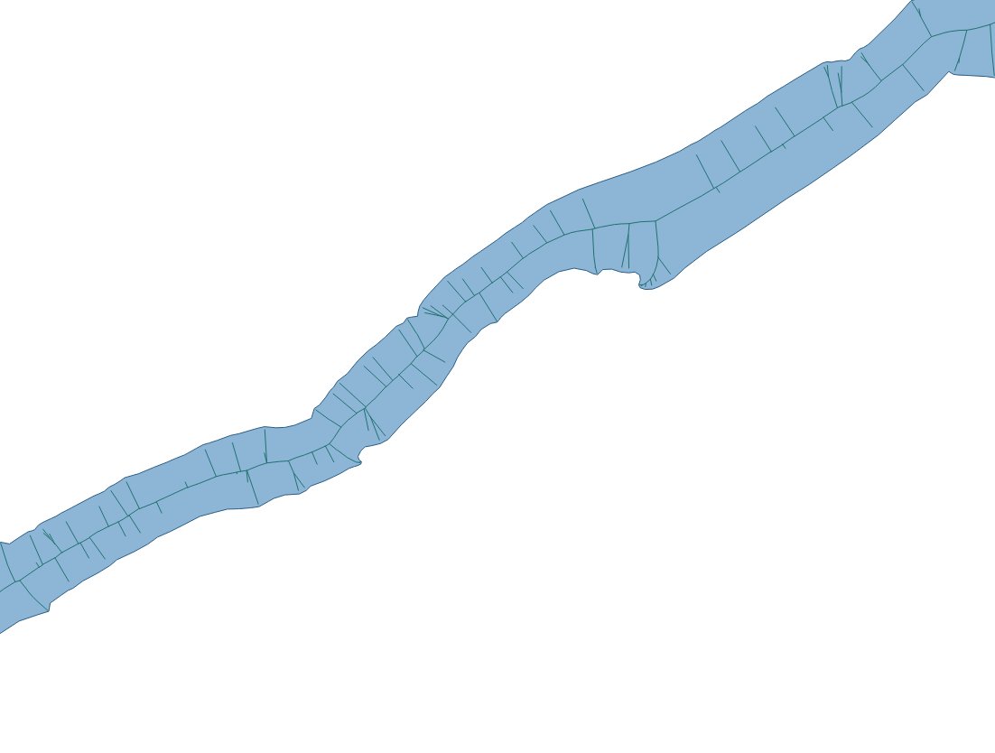 So I needed some other way to measure a river. I used river polygons downloaded for free from the conservation authority and generated a centreline within it with GIS. Then I broke up the banks and the river centreline using parcel data to create somewhat precise segments. Creating these and obtaining their lengths is relatively quick work thanks to tracing tools and table functions in GIS. Then I joined two tables to connect a bank segment to a corresponding centreline segment.
