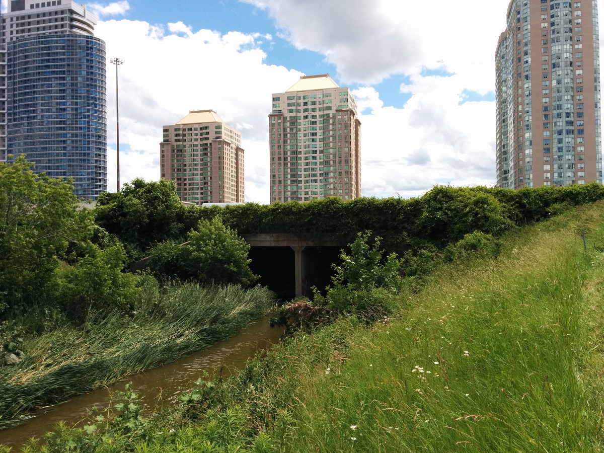 My tweets were still choppy and left gaps. For example, a walk from June 24, 2017 along East Highland Creek’s East Branch left out nice shots and descriptions of how it stayed in a concrete channel (with increased green through the cracks) till it hit the 401.