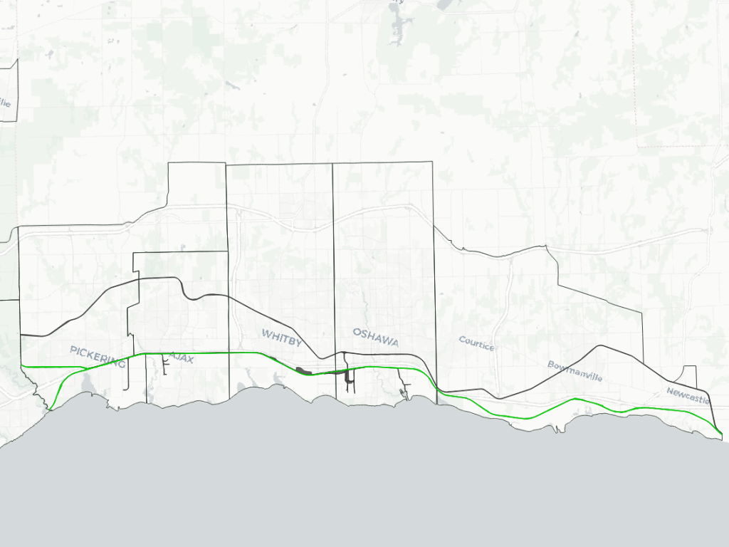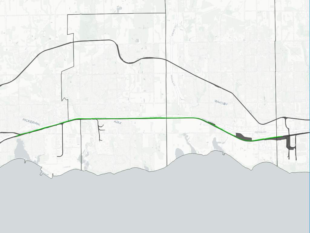 Railways in the East Greater Toronto Area are somewhat straightforward. Lines from Canada’s two major railways extend east-west between Toronto and eastern Canada, with a slight junction in the west and a parallel commuter line in the middle. The rest consists of spurs and yards serving industrial southern industrial areas in Pickering, Ajax and Oshawa, as well as a relatively new commuter rail maintenance facility.
