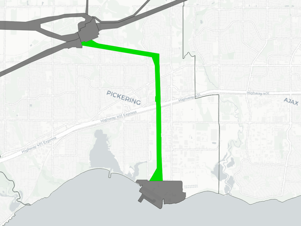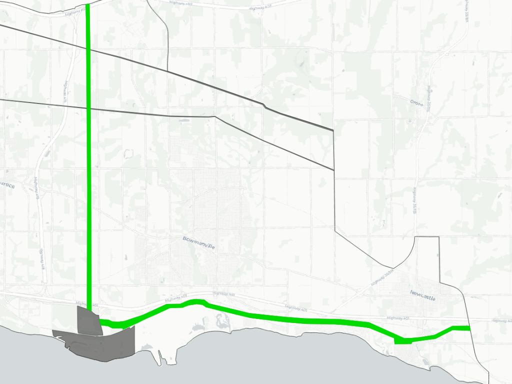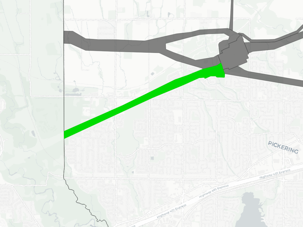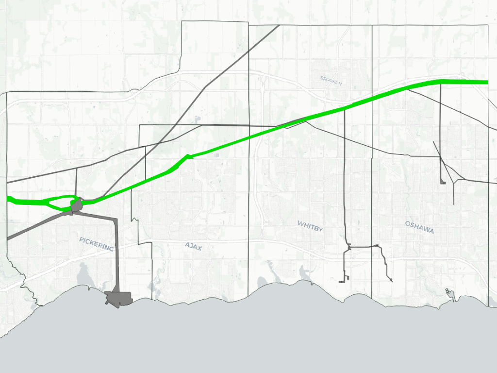 Utility corridors in the East Greater Toronto Area are defined by the fact that two of Canada’s four nuclear power plants are here. These plants feed into a 500 kilovolt electrical transmission (“hydro”) corridor that acts as a backbone to Ontario’s electricity system. Coupled with lower voltage hydro to serve the east GTA cities, as well as some oil and gas pipelines, these form corridors totalling 225 kilometres in length, and covering over 2,000 hectares.