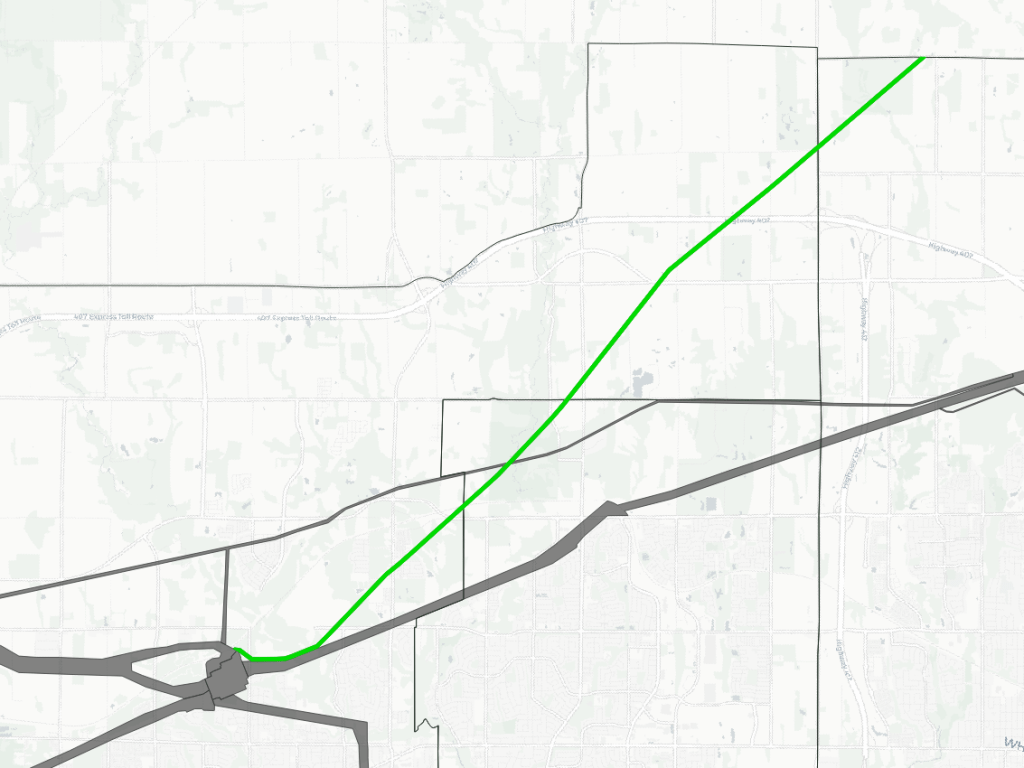 Some utility corridors are not plainly defined by property boundaries, and may cross or abut private property, roadways and railways. Some interpretive liberties were taken. Furthermore, corridors were drawn in an estimated manner, as parcel data is not publicly available.