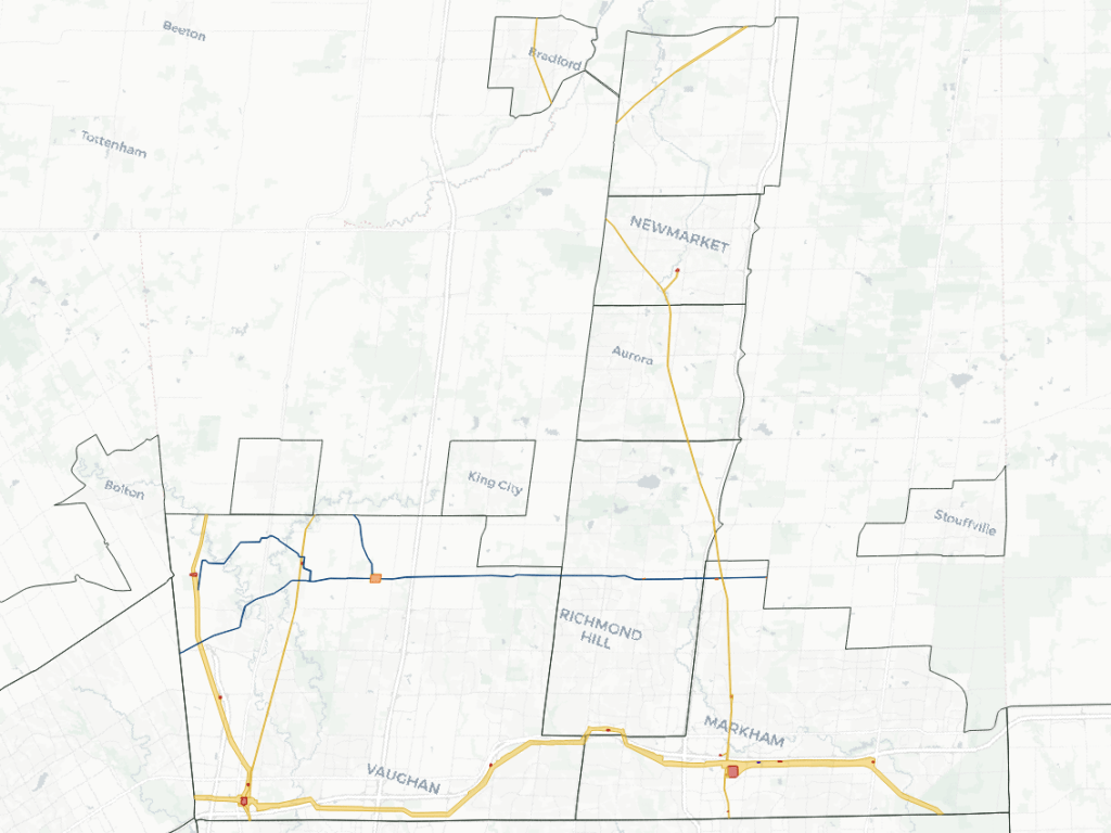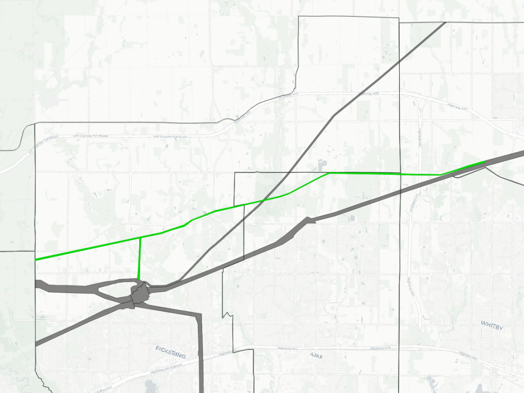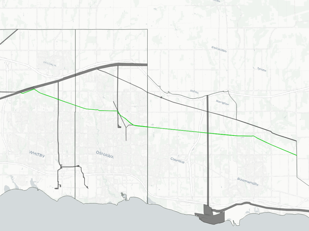 Pipelines are often found within hydro corridors. These are identified primarily as hydro corridors, while pipeline corridors are identified as corridors where hydro lines are not present. Identifying a hydro corridor does not confirm the presence or absence of pipelines.