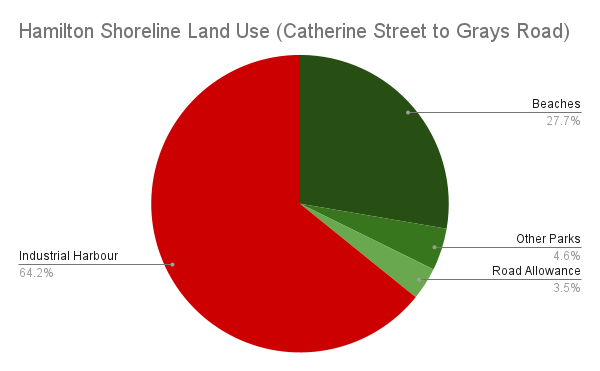 Over a third of the shoreline is strictly tied up in the piers and inlets of the industrial sectors. This whole stretch of shoreline between Catherine Street and Eastport Drive is what gave Hamilton its brand as a steel town, and may seem like land that is forgone as being locked away forever in heavy industrial use. But the recent sale of the Stelco Lands provides a major catalyst for redevelopment of these lands into modern industrial parks unlocking major public realm improvements.