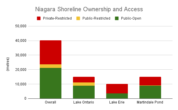 Niagara Region is unique from the other shorelines I have analyzed to date, as the urban areas span not just Lake Ontario, but Lake Erie as well.