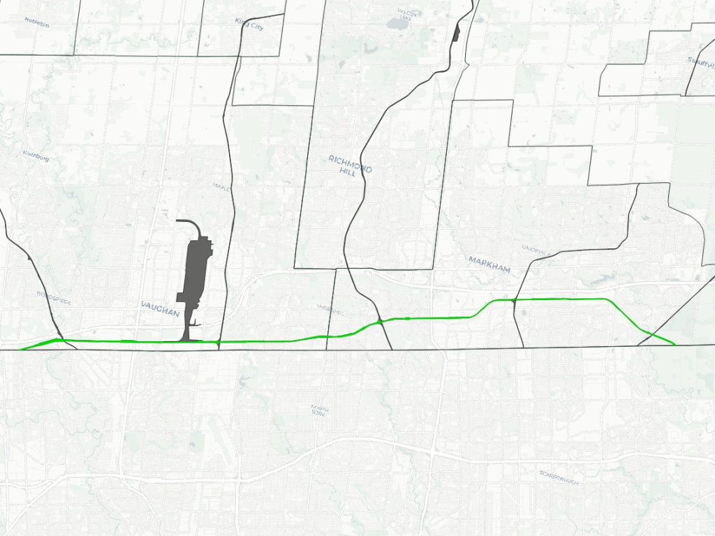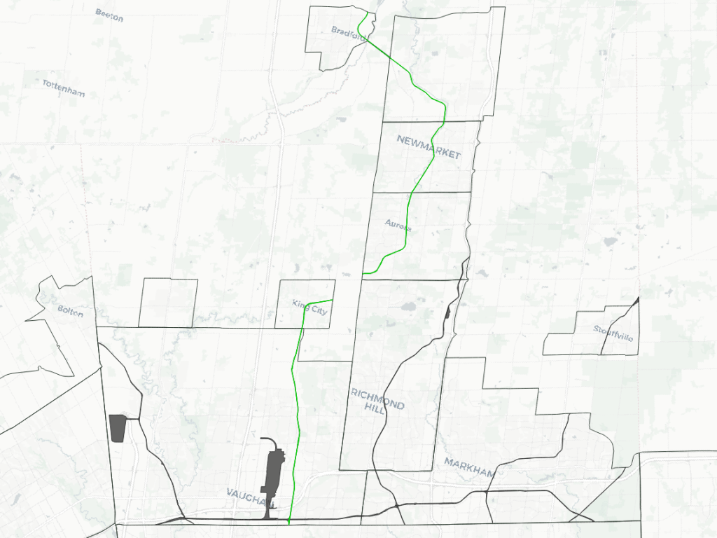 It is now more commonly known as GO Transit’s Barrie Line, which began service in 1982. It runs through the east portion of Vaughan until King City, where it jogs east to serve Aurora, Newmarket and East Gwillimbury. It then goes west again to cross the Holland River and serve Bradford / West Gillimbury, before continuing to Barrie.