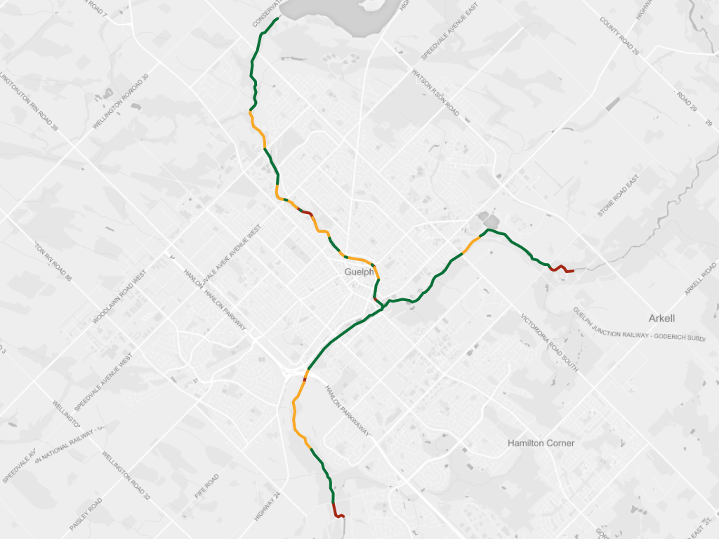 Now on the shoreline of a major city centre (like Toronto), the ownership of a strip of shore is a pretty good proxy of public space and enjoyment. That’s not necessarily the case for riverbanks of medium-sized cities surrounded by rural townships. Ownership has to be looked at in combination with access; whether you can walk or bike to the river’s edge to enjoy it.