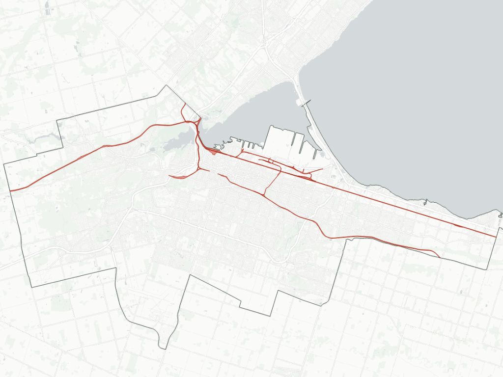 An extension of this project, I broke down the longest stretches of railways (and highways) that present a barrier to active transportation.