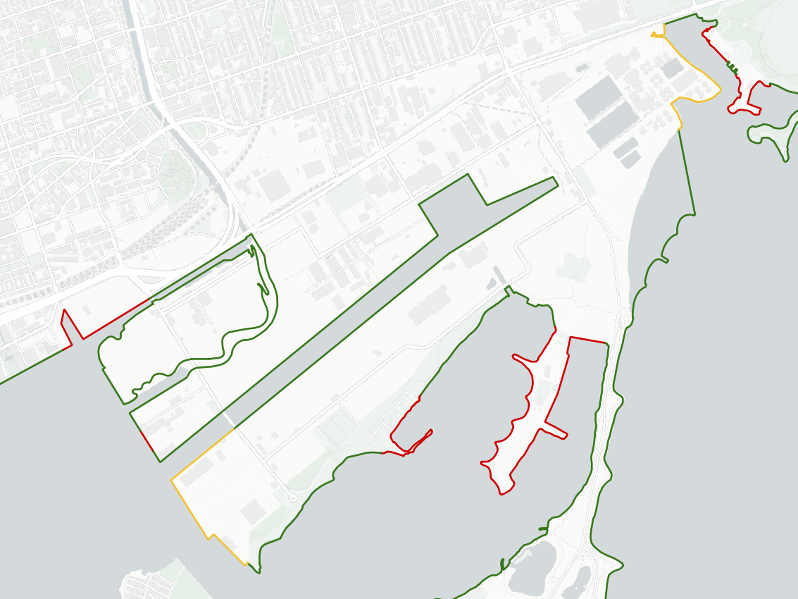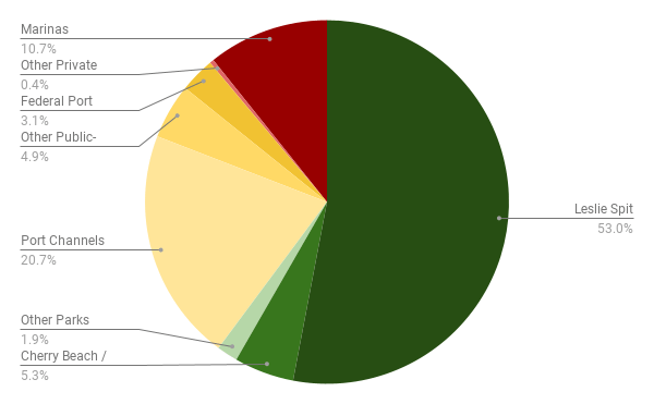 When you exclude the Leslie Spit, these changes will dramatically increase the amount of publicly accessible shoreline. Only three segments will not be public access: the Rebel nightclub, the federal port, and the Outer Harbour Sailing Federation. The exact amount of parkland that are complete, and when they open, is still currently subject to flux.