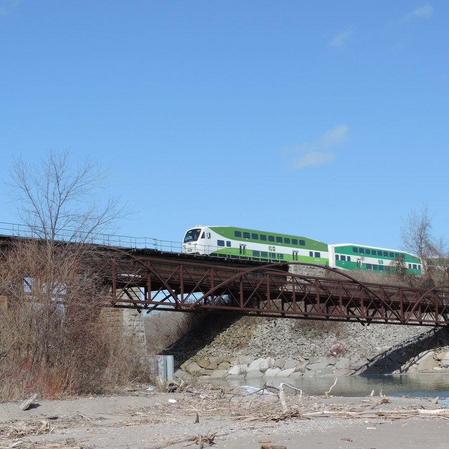 Bridge crossing over a Highland Creek tributary, under the bridge for GO Transit’s rossing to the lake. Beach day!