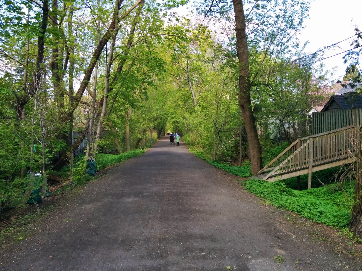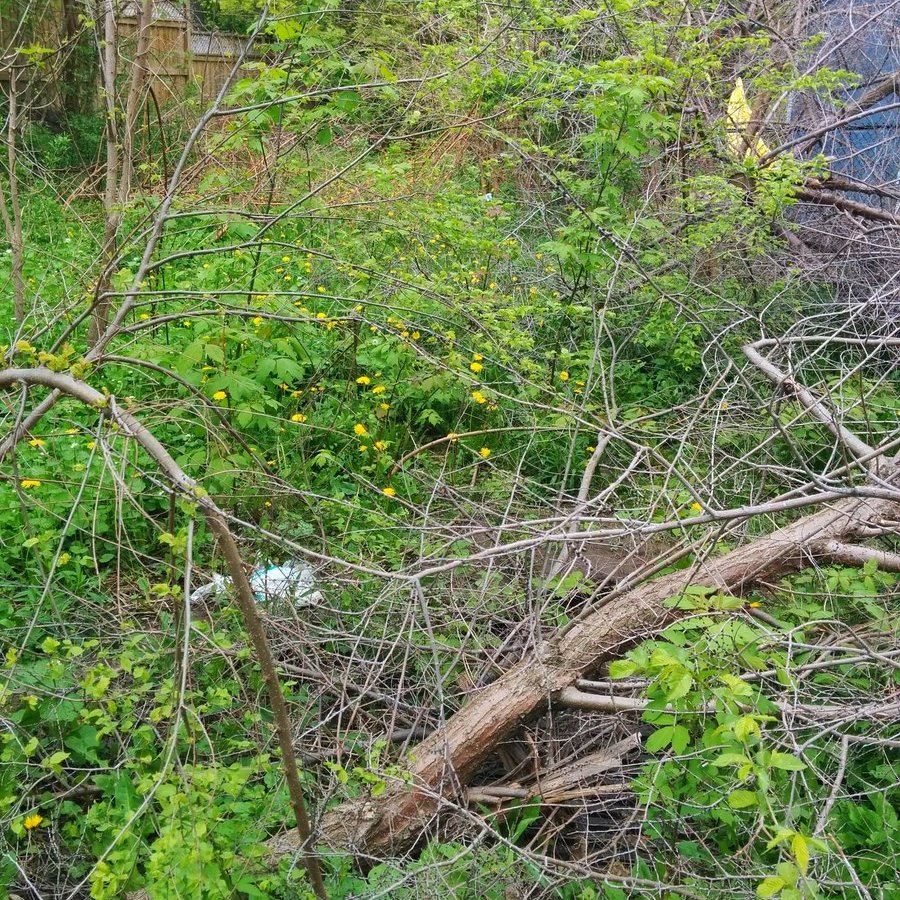 Suddenly, a wild creek appears! Got two steps into here, thinking it was a public park. Then I realized it was private property. Shame.