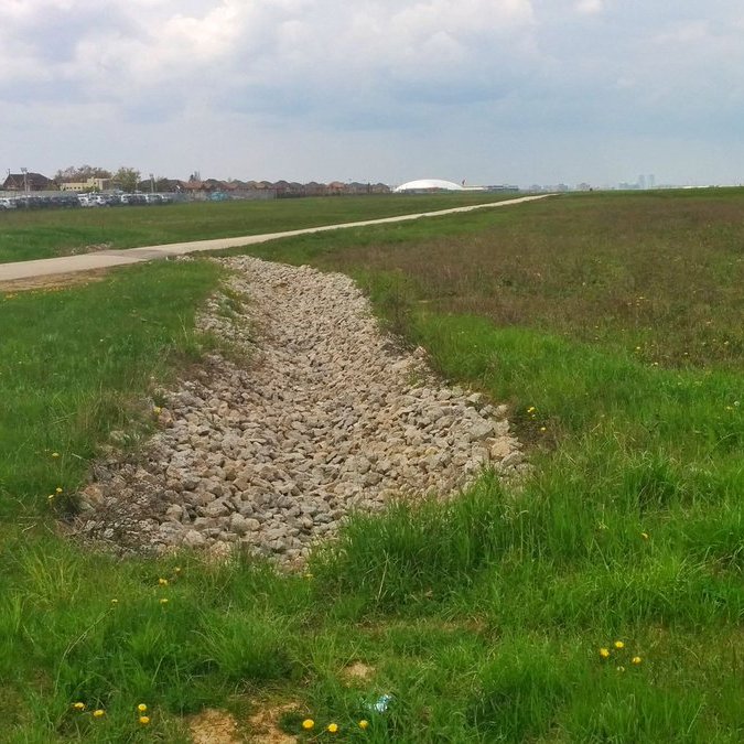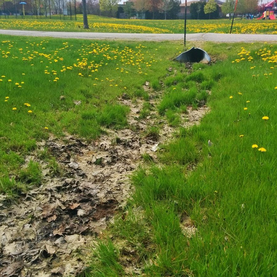 Tracing the buried sections of Yellow Creek today! Starting along the Beltline. Ditches and low-lying pond areas are still reminiscent of the creeks old path.