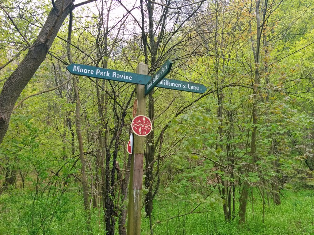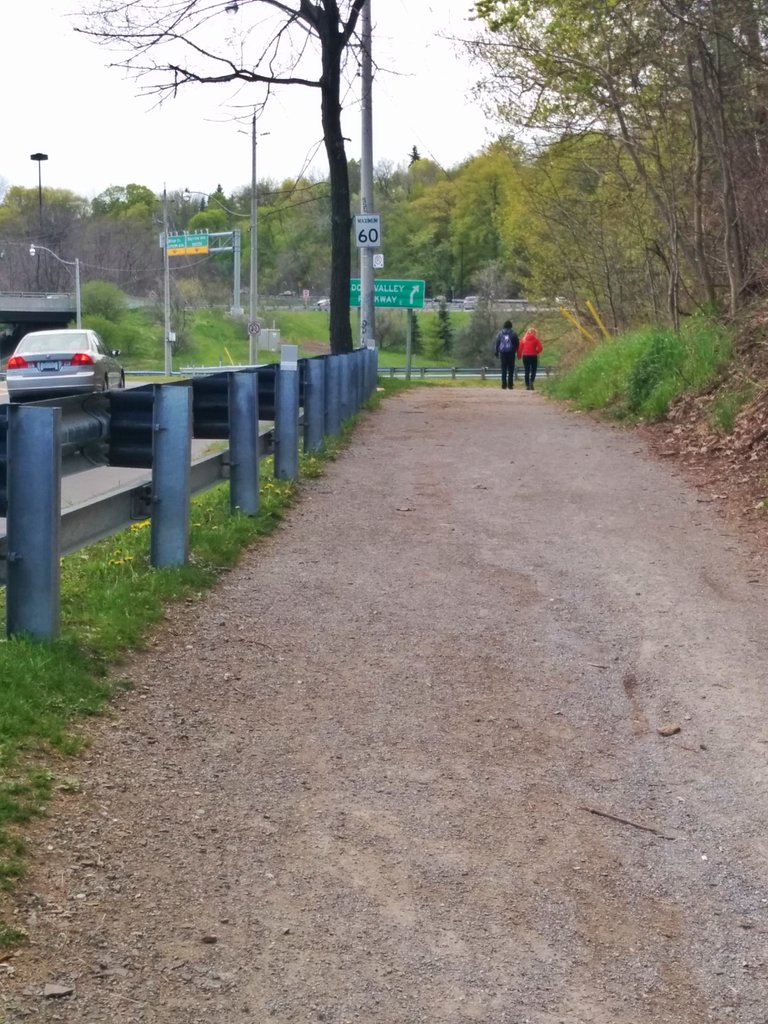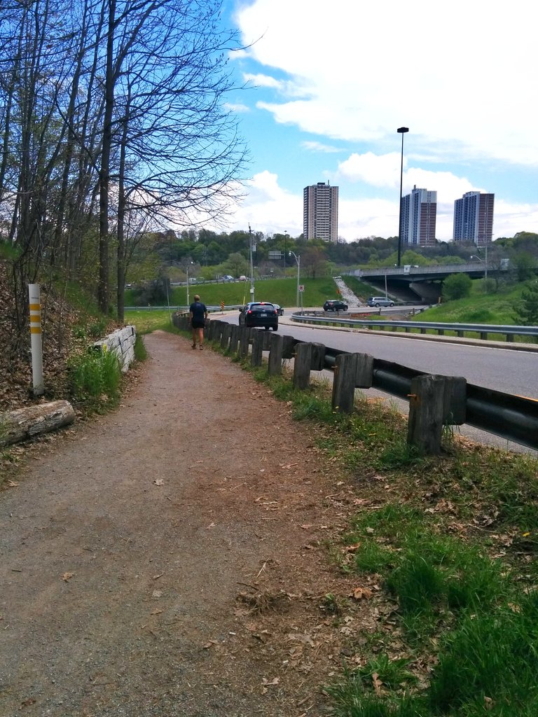 Castle Frank Brook goes back underground again with Yellow Creek, this time to pass beneath the DVP offramp at Bayview. The trail reaches a junction. I elect, in the interest of following the creek, to take the path that squeezes by the DVP offramp.
