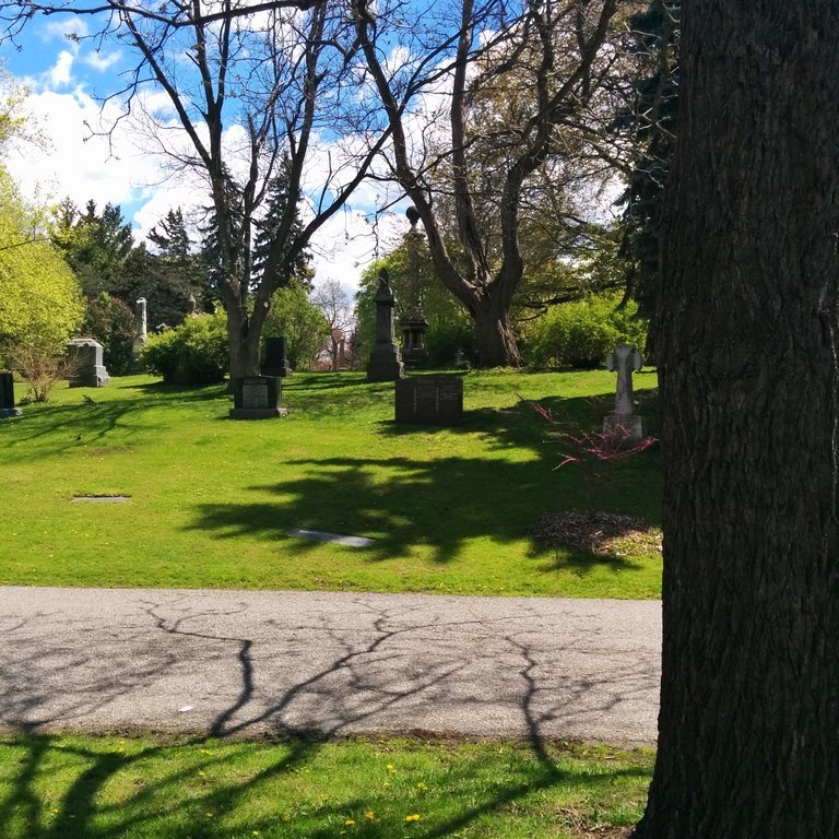 Dead people like here, 6 feet under. A creek, still alive, flows further down.