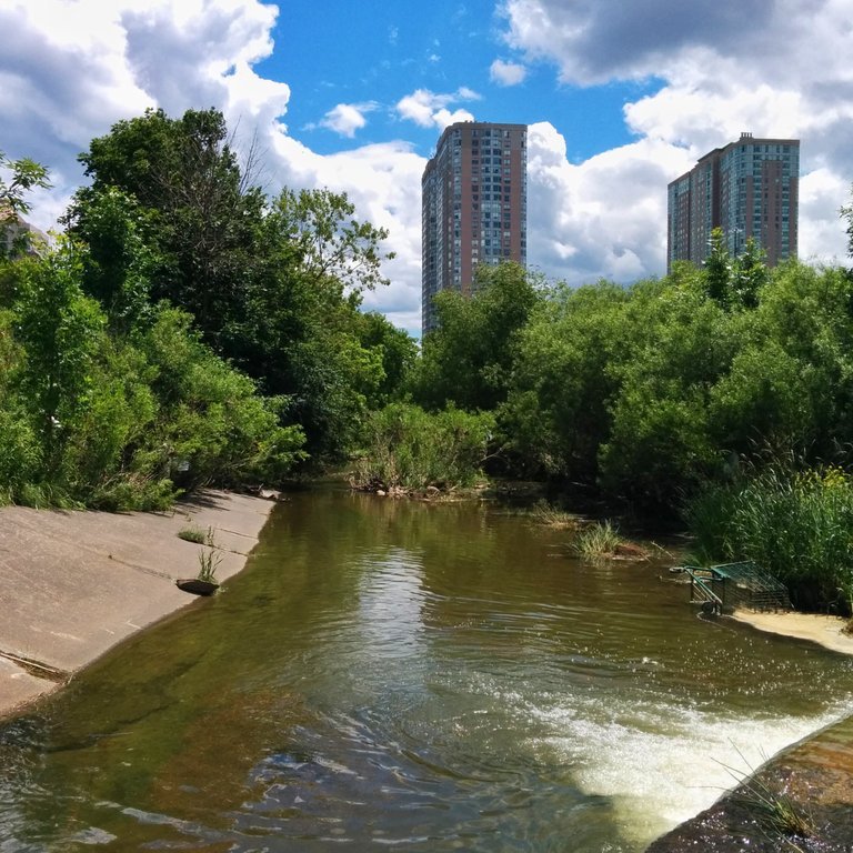Concrete continues, with more green as you go. Eventually it’s triple culverts right to the 401.