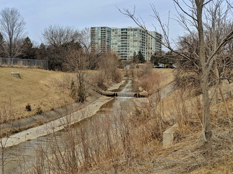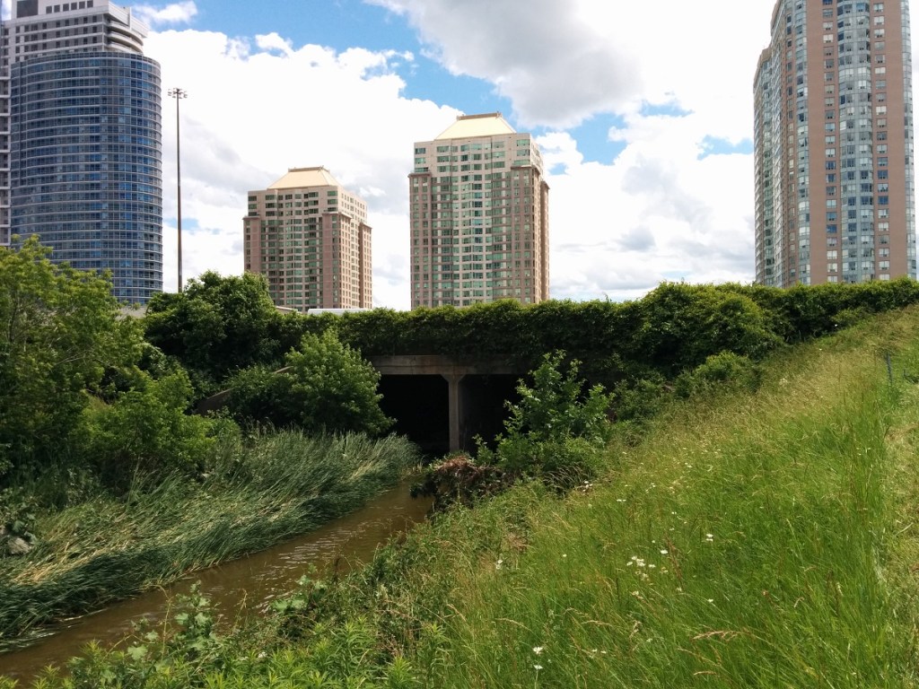 Here’s my ultimate target: where East Highland Creek’s East Branch is lost north of the Finch Hydro Corridor. I’ll be tracing it south. It’s more of an urban drain than a ravine, but I’ll take it.