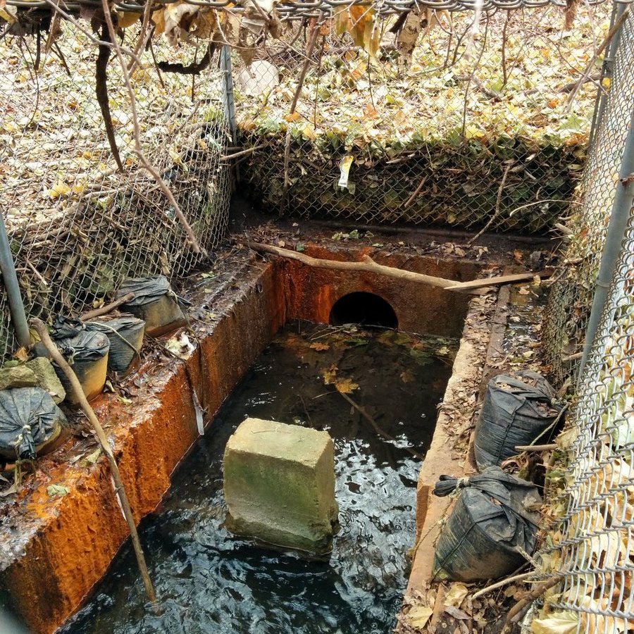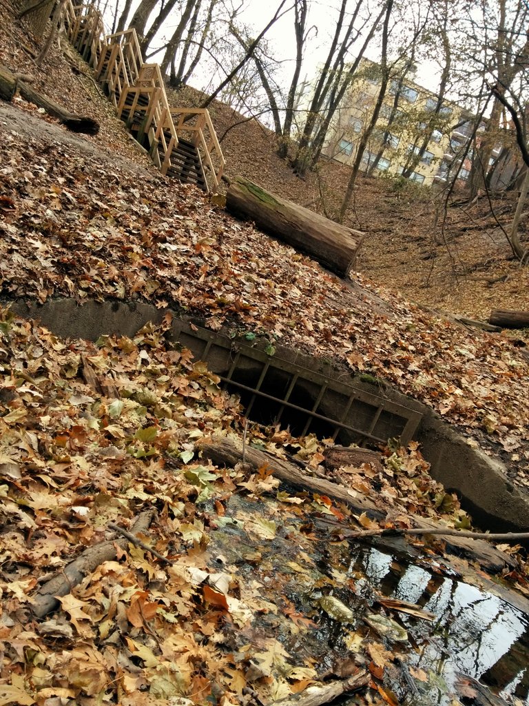 This isn’t a tiny ditch, there’s half decent flow here. Goes through a little ravine before diving into this inlet to go under the rail corridor. No pedestrian passage, gotta go around.