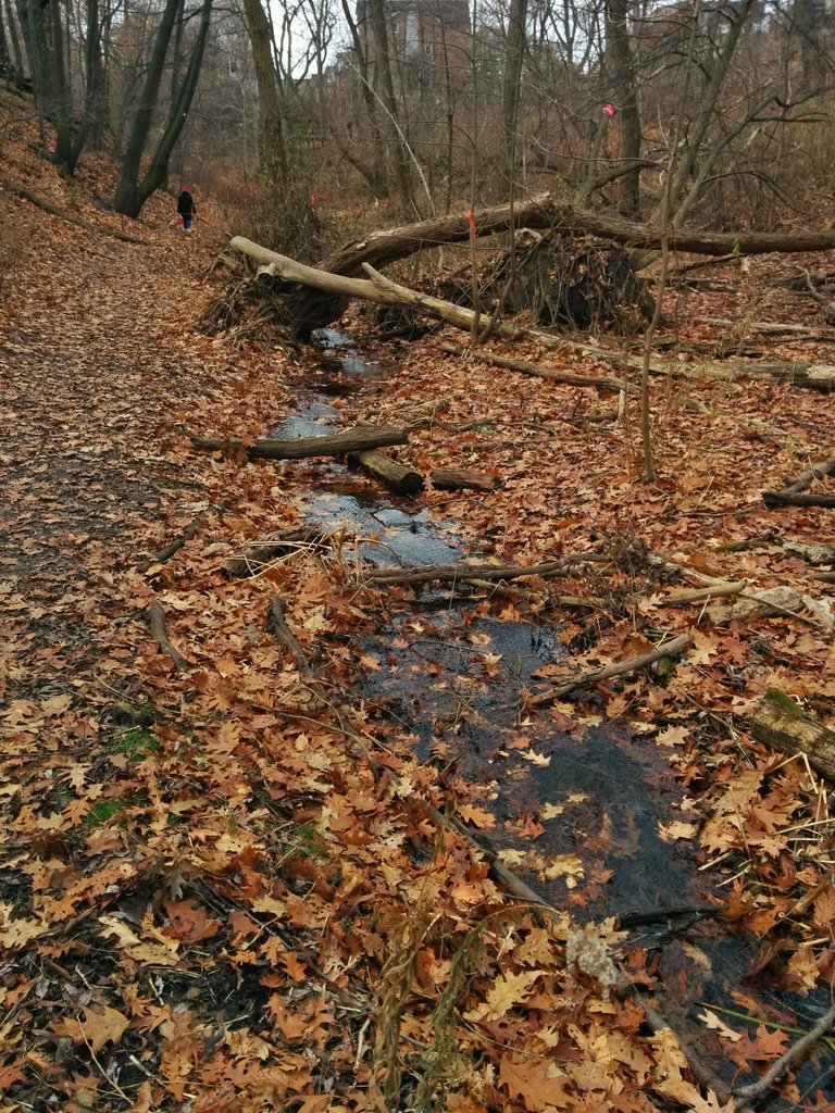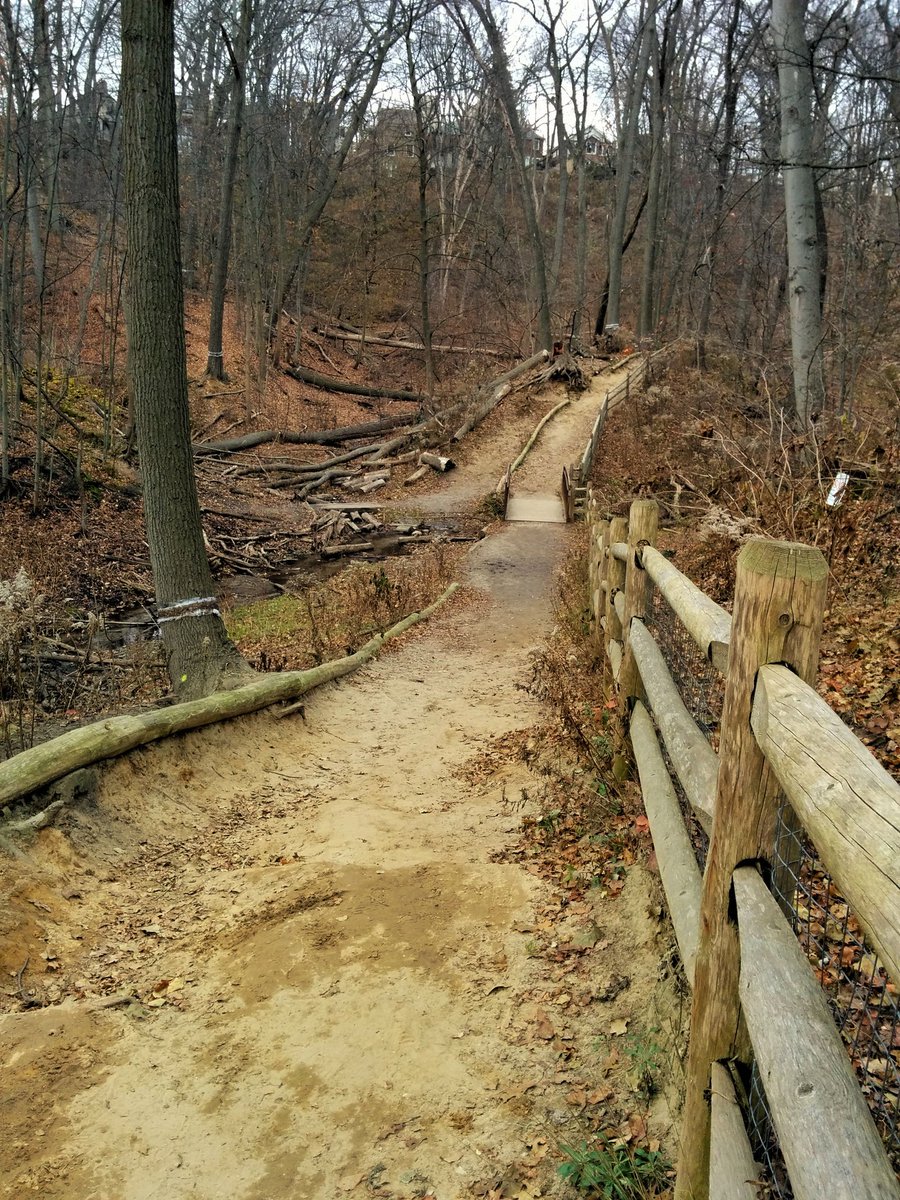 Last time I was here, these stairs were a work in progress. They’re done now, and they look solid. Always great to see an investment in ravine access. Interruptions are starting.