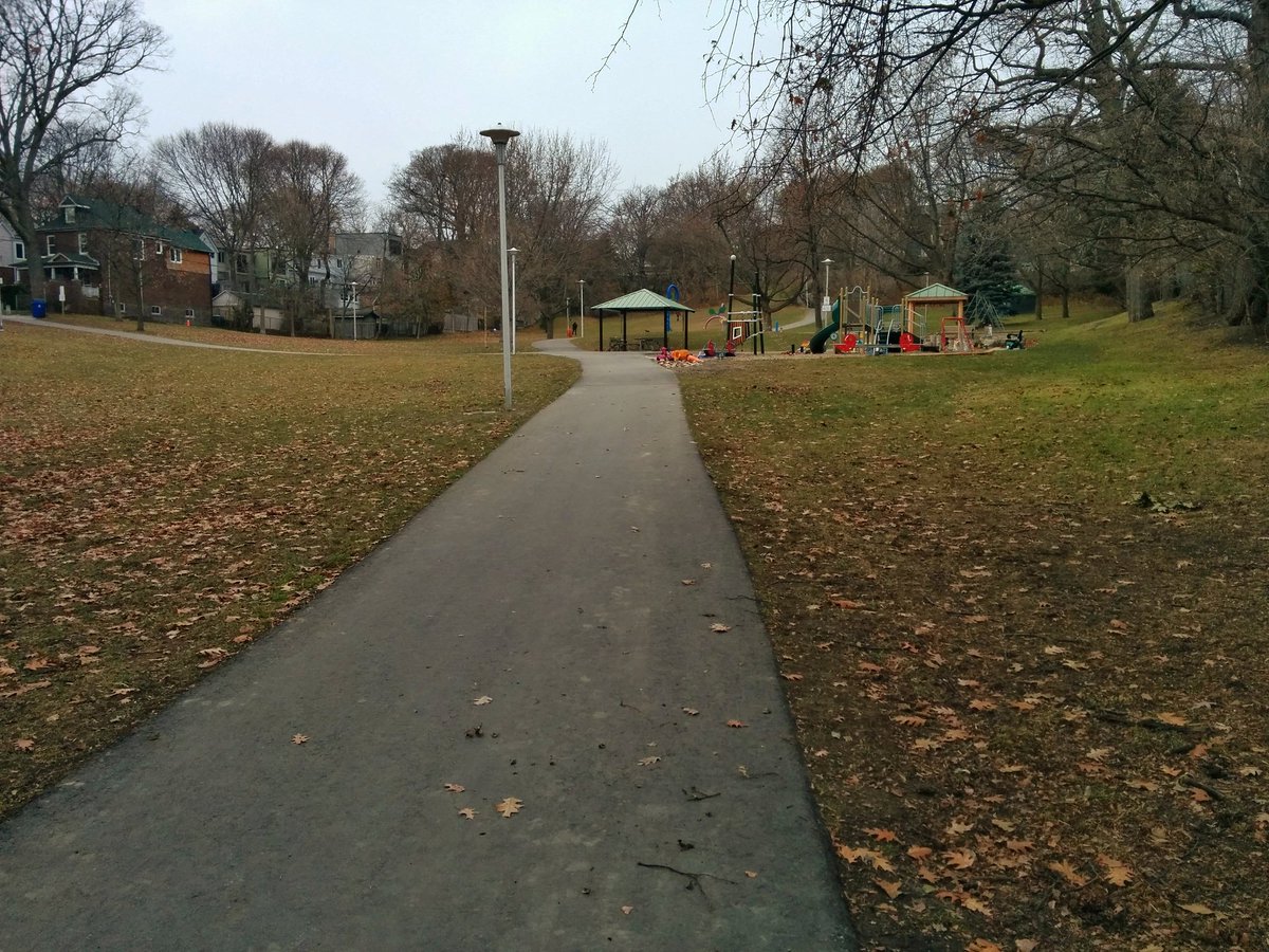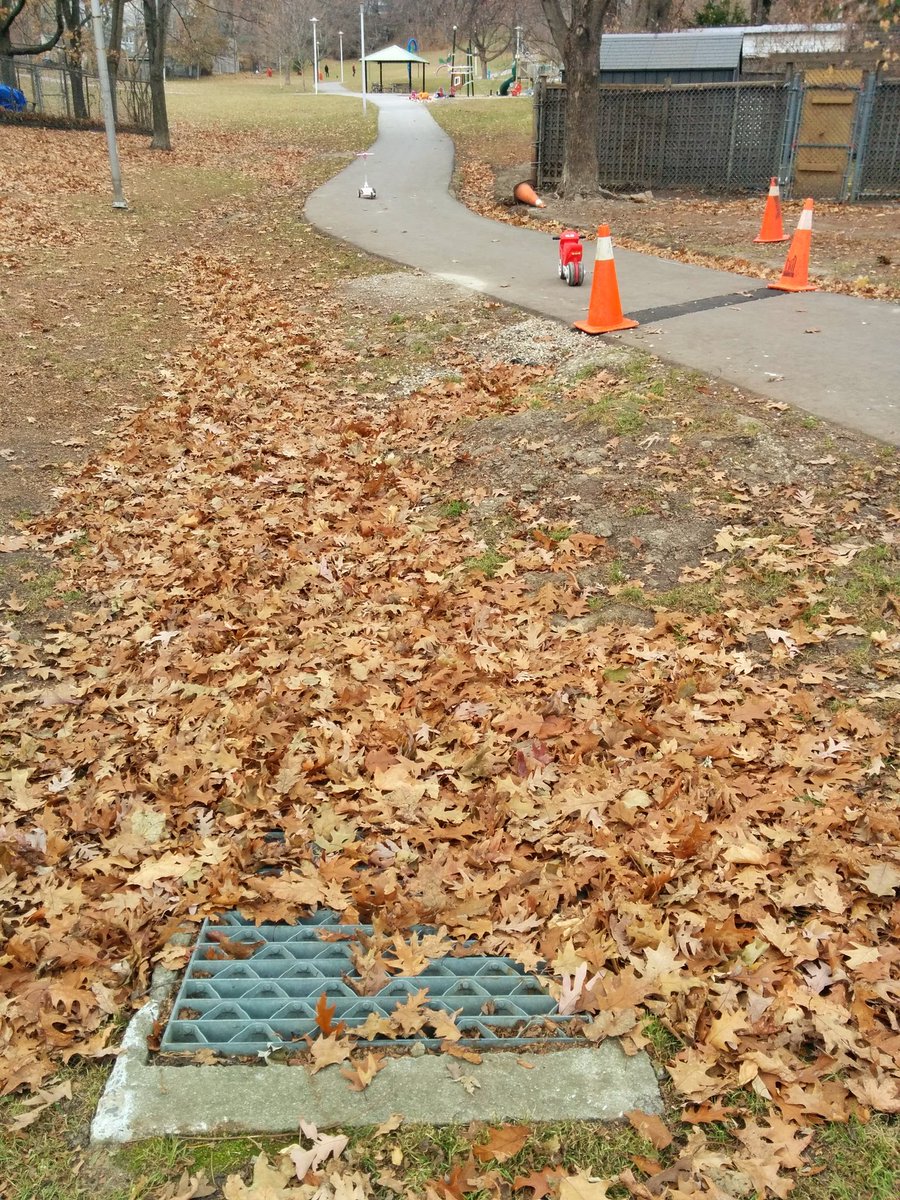 Surface ditches, manhole covers, recreation park. Definitely looks like a former ravine. I’m going to end this chase here, and head back west to the Smalls Creek tributary.