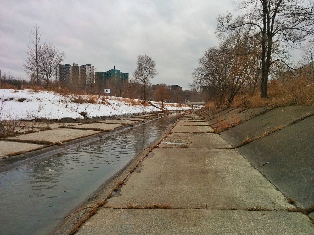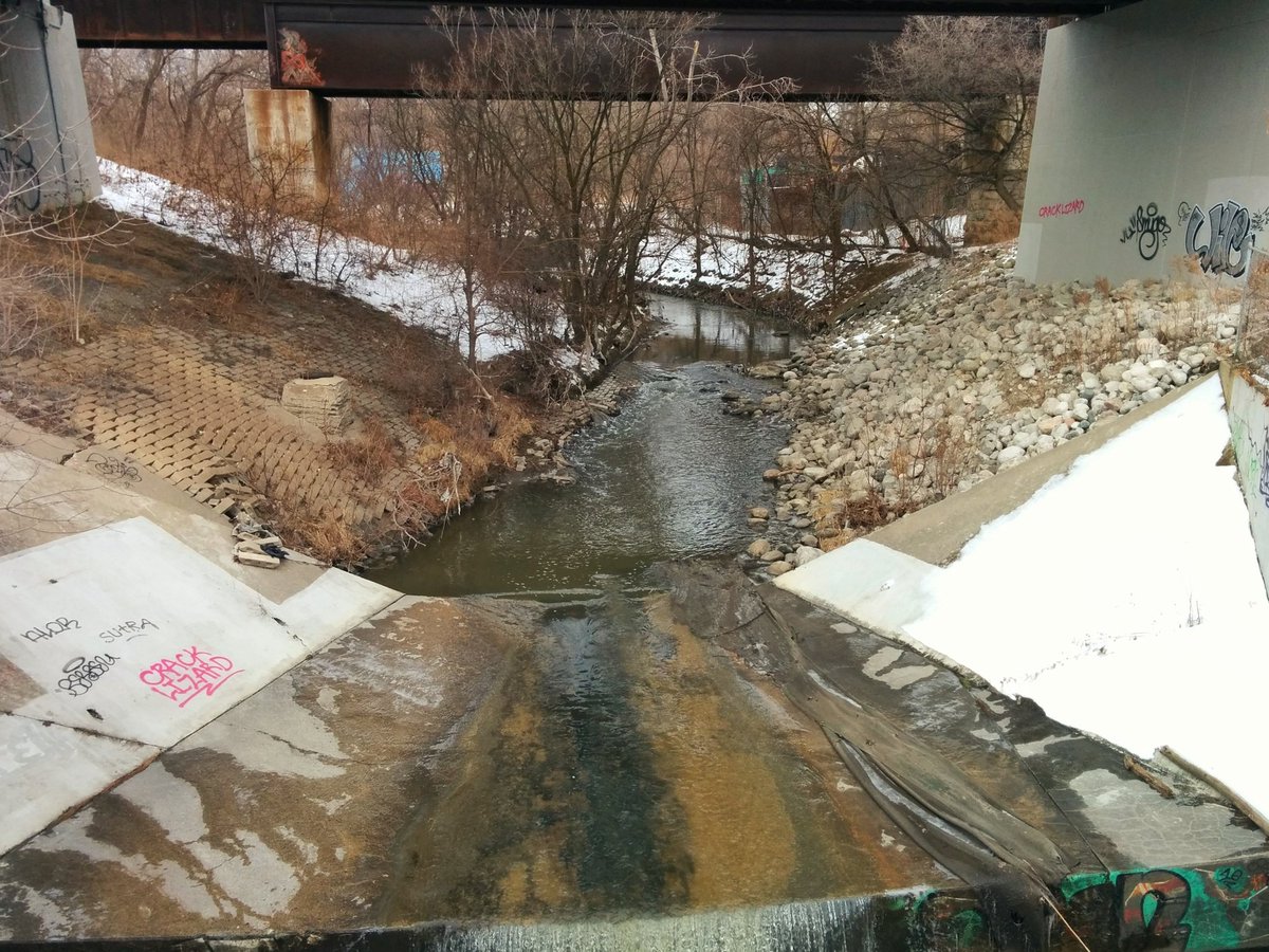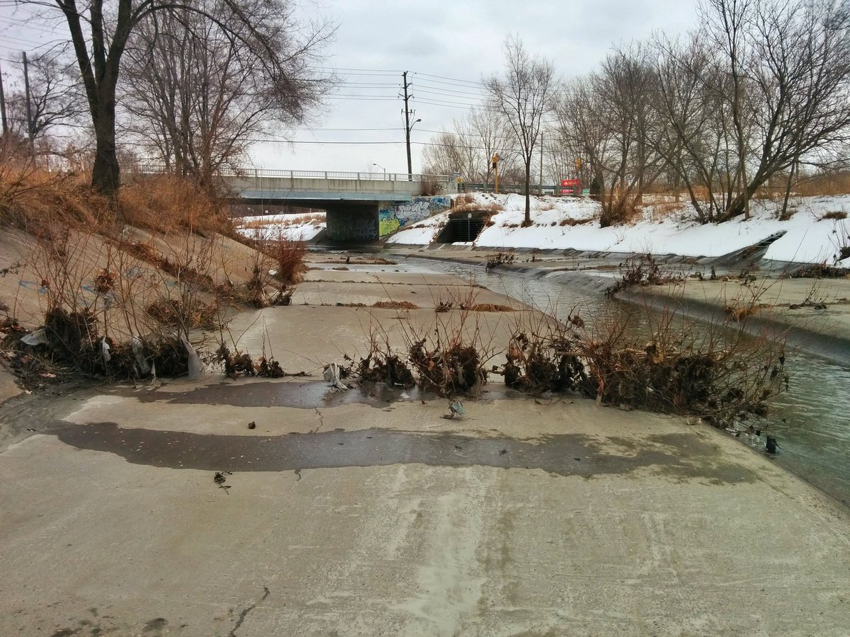 Concrete walls. Concrete channels. Concrete outlets. Water swept vegetation poking out of concrete. I can tell you this is a common theme for Black Creek in Toronto.
