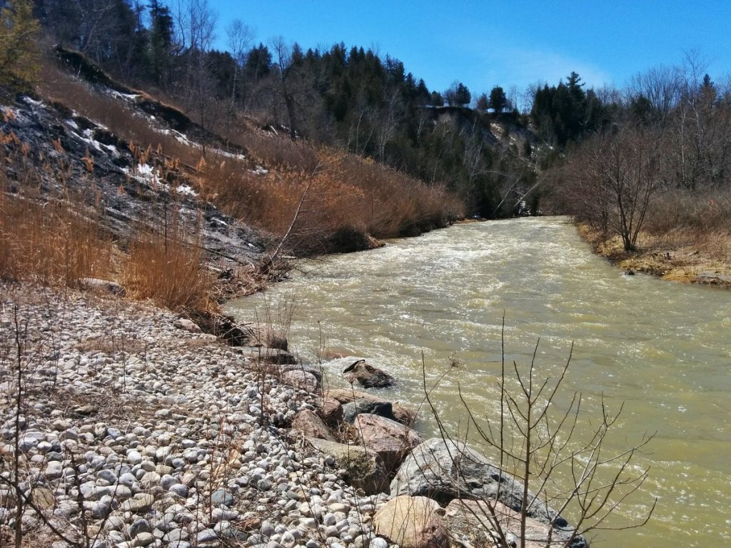 North of Ellesmere, a big barrier: East Highland Creek. There is a small trail on the west bank, just not well established.