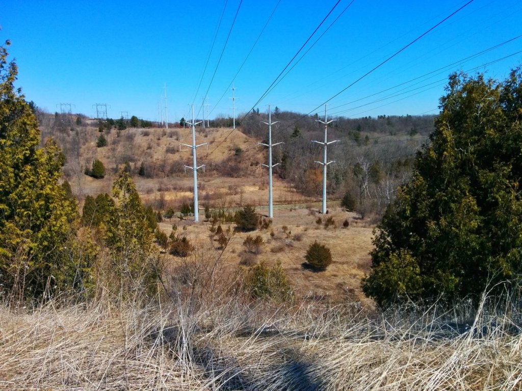 That point is southwest of Ellesmere and Orton Park, a step down area where some provincial lines drop to local distribution for Scarborough, and some of that is sent to a substation for local distribution. Don’t know what improvements can occur here, but it’s perfect for a wetland.