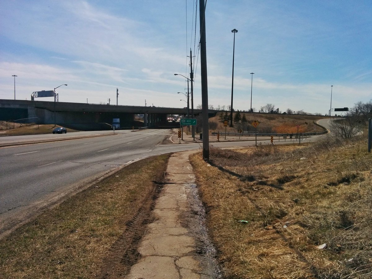 And then, the barrier that’s more obvious: Morningside at the 401. 13 lane freeway interchanging with a 6 lane arterial, not including collector-express transfer, merge lanes, or ramps. Bit of a hoopla to get around.