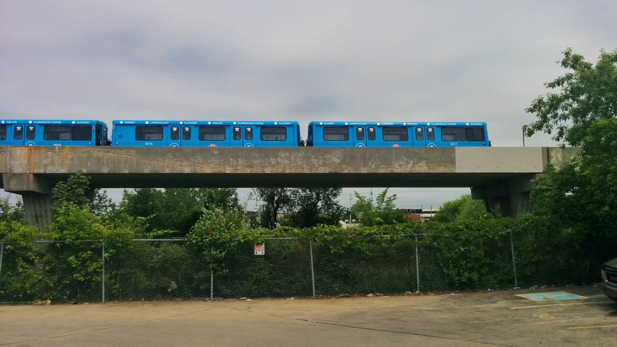 Ended up going backwards without realizing it until almost reaching Brimley again. Going the right way, I now reach Ellesmere. Highland Creek is overgrown, and then fenced off near TTC Line 3. Going around.