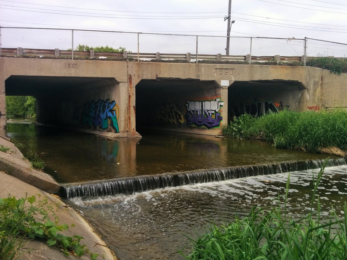 Probably one of the coolest crossings in Toronto: the Canadian Pacific railway, over the GO Transit Stouffville line, over Highland Creek. The latter then continues in a concrete channel northwest under Sheppard and Kennedy.