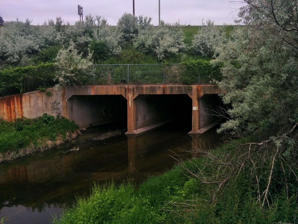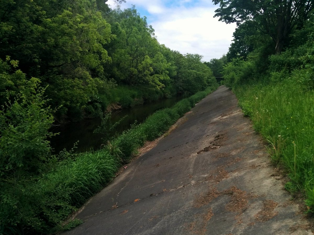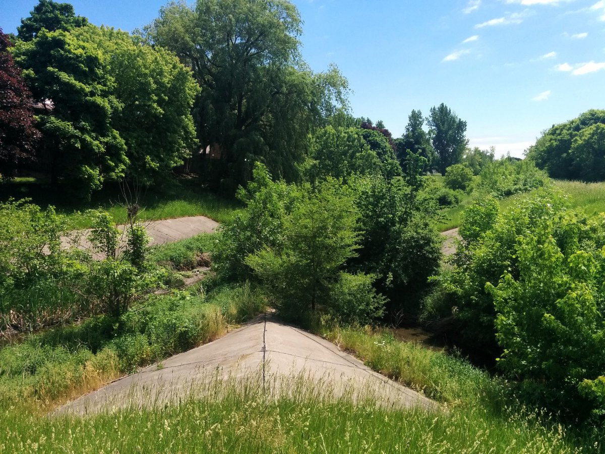 It’s always a shame to see what appears to be city property fenced off and unused, especially when it prevents the establishment of a trail, especially when it parallels a creek. Nonetheless I got to walk in the concrete channel northwest for some time.