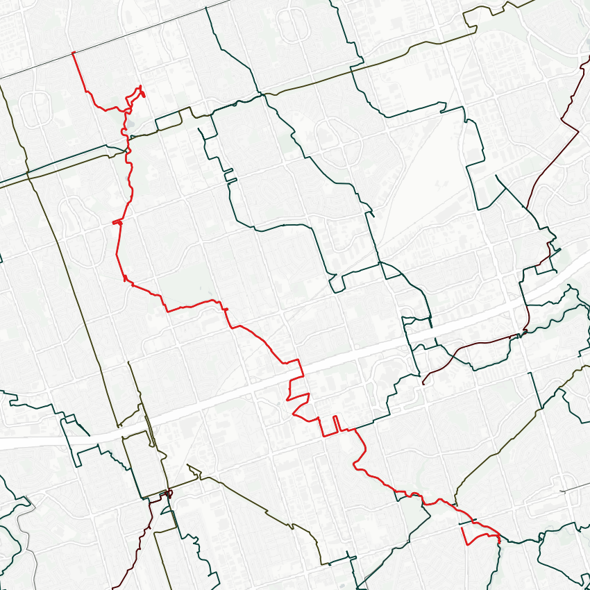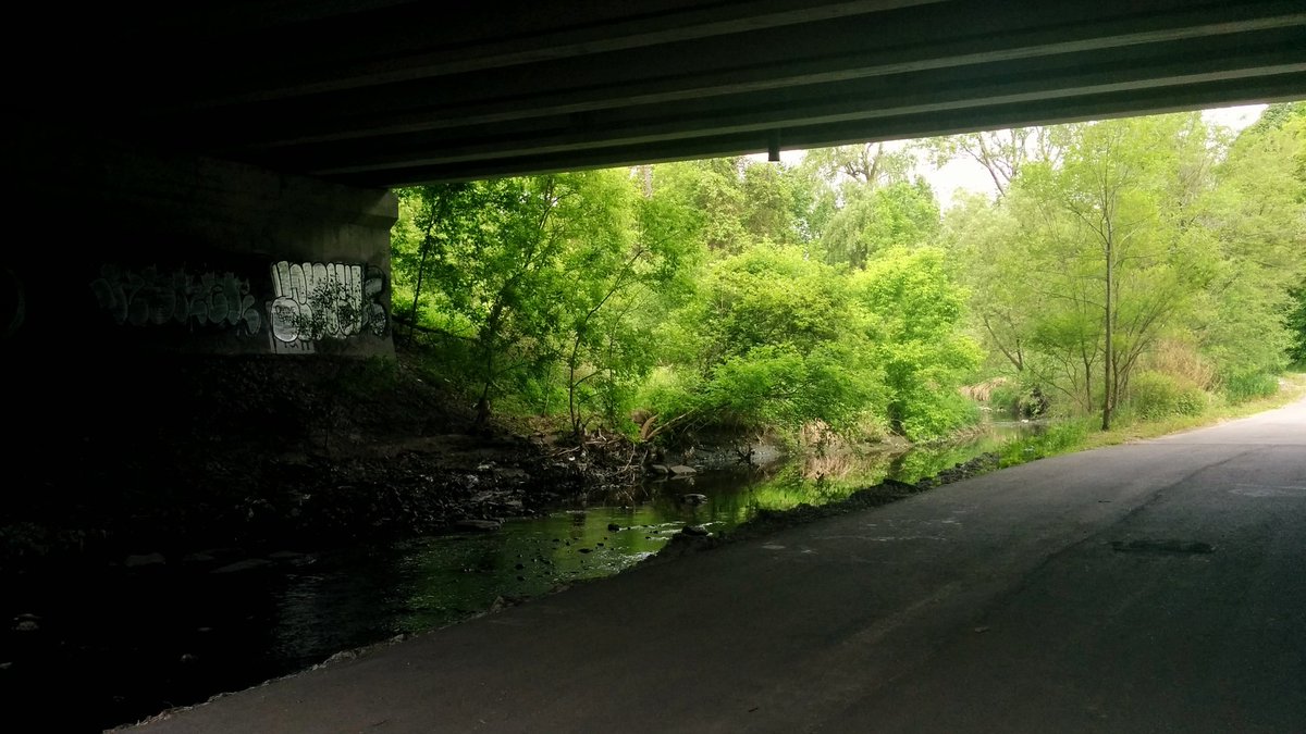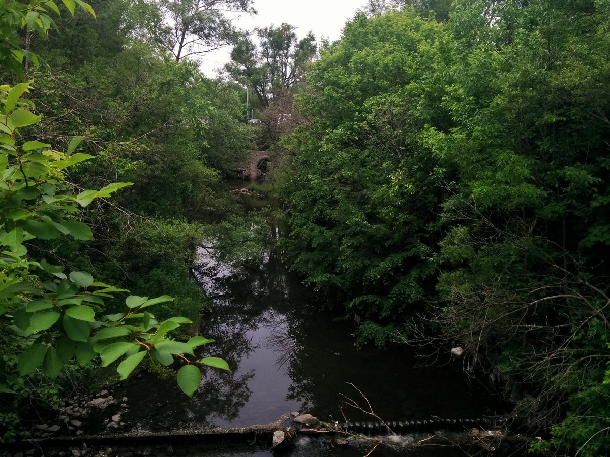 After diverting around a factory, you can follow Highland Creek through the back of industrial/commercial parks, except under the 401.