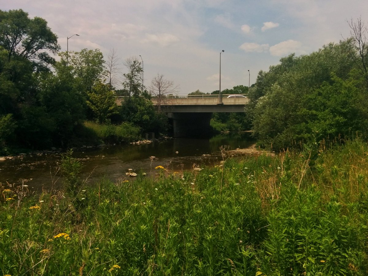 Good afternoon. We’re heading up Etobicoke Creek today, starting from Sherway. First crossing: the old Middle Road Bridge, circa 1909 and still alive over a century later. If the architecture is familiar, it is because you’ve seen a similar bridge at the Forks of the Don.