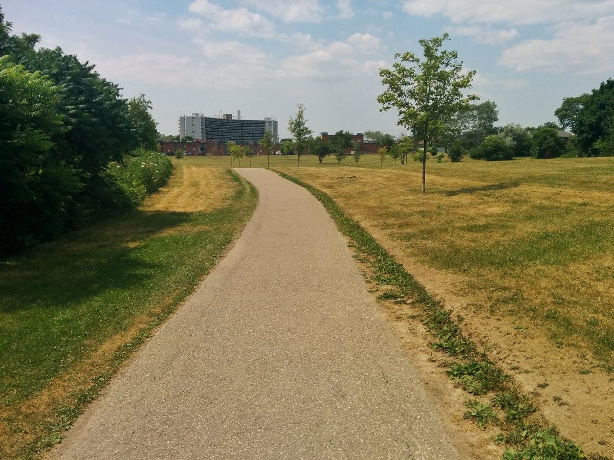 Access problems right off the bat, but it’s because I was on the Mississauga side. After glimpsing the confluence with Little Etobicoke Creek, a brief endeavor along industrial roads and container lots, before getting back into the ravine.