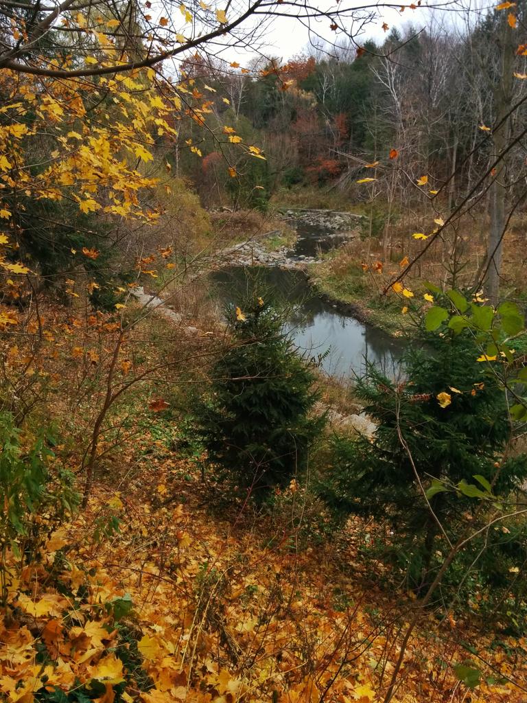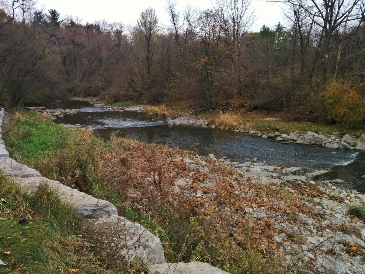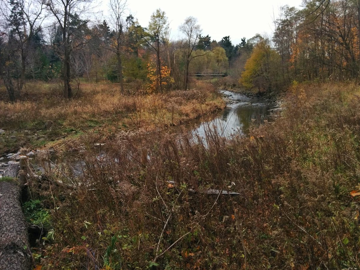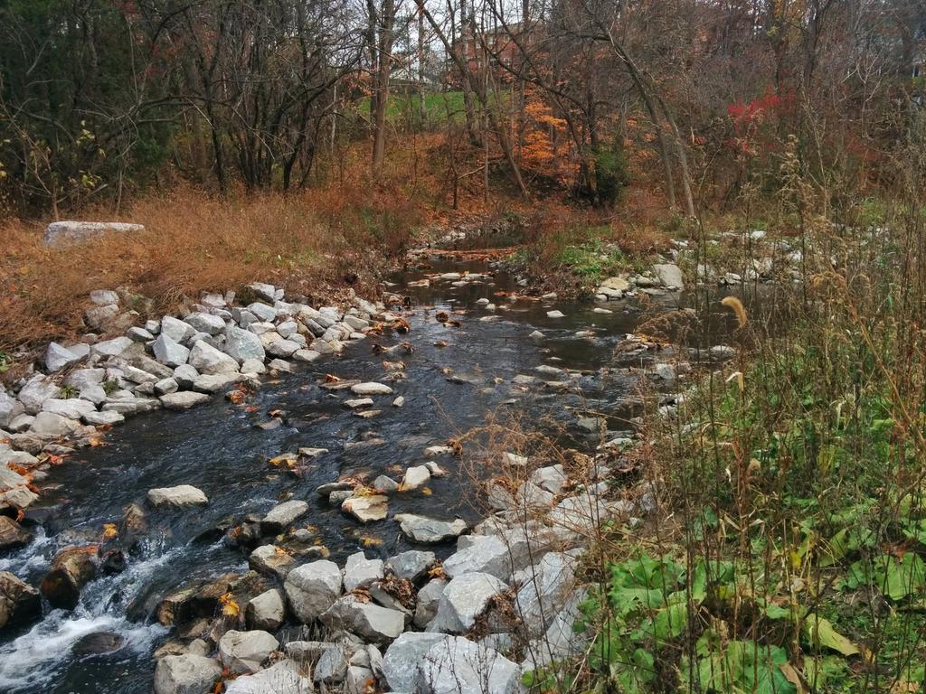 Let’s take a walk. Starting at where West Highland Creek’s Dorset Branch meets the Scarborough RT, and heading downstream. The Dorset Branch is small when it’s not raining. Access is kinda there, made difficult by fences. Headed southeast. Fall colours still hanging on somewhat.