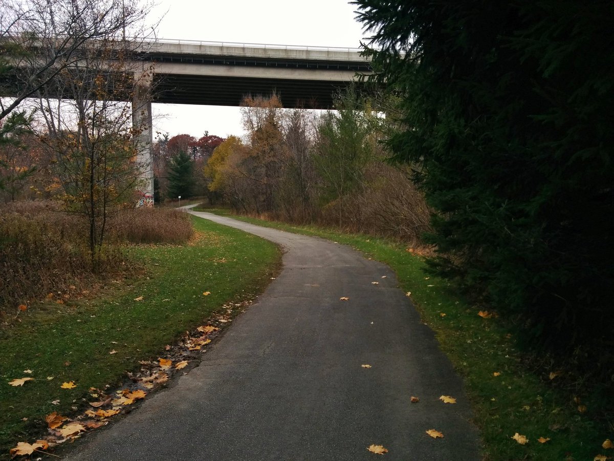 Paved trail downgrades to a well beaten footpath. But looks like the TRCA is counting users. A sensitive upgrade would be welcome here.