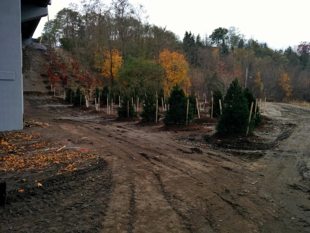 Reddish browns of fall hanging on, with highlights of yellow. Significant replanting happening in this stretch of the lower Highland Creek. Cabin in the woods.