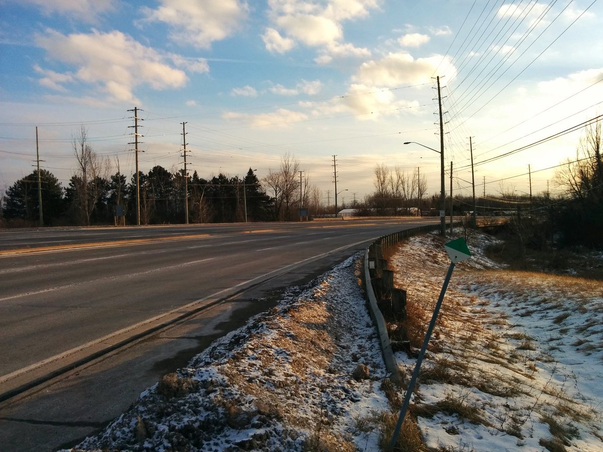 The sun is getting low as I cross the city border, but at least it’s brighter than last time I was here. Under the CN mainline towards Highway 7.