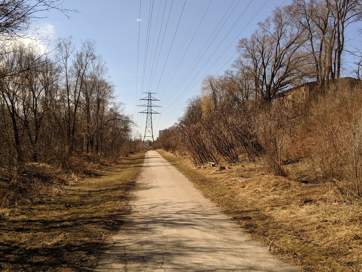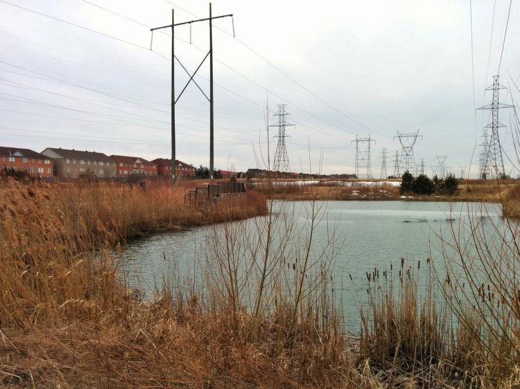 Lavender Creek stays contained in this culvert for a while, continuing west past Weston Road and some parkland. Finally appears again north of Gunn’s Road and northwest of the Stockyards, parallel to a hydro corridor.