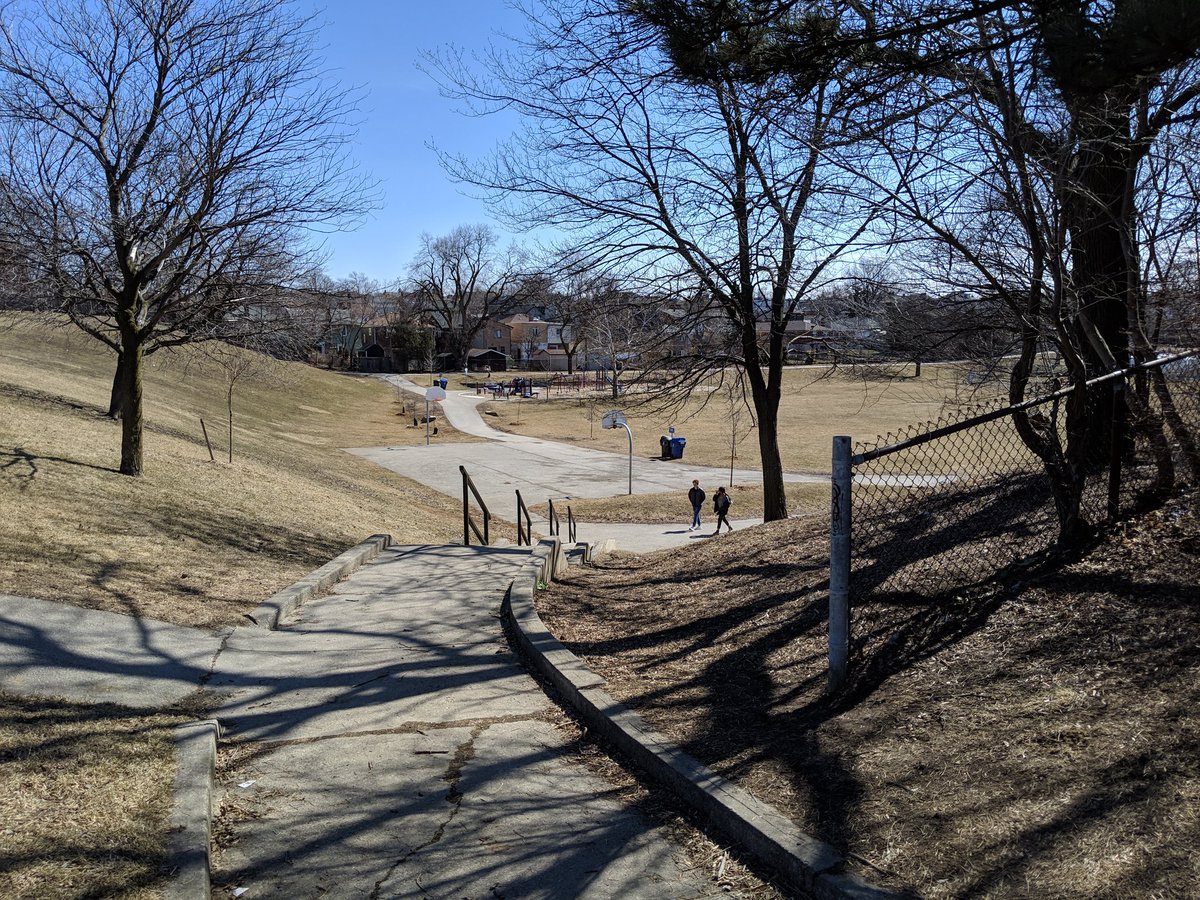 A beautiful day for a walk. Today I’ll be tracing tributaries of Black Creek. Many are lost, but I believe some (at least parts of them) remain. I dunno, we’ll just have to see. Starting point is Fairbank Memorial Park, the headwater of Lavender Creek. Let’s go.