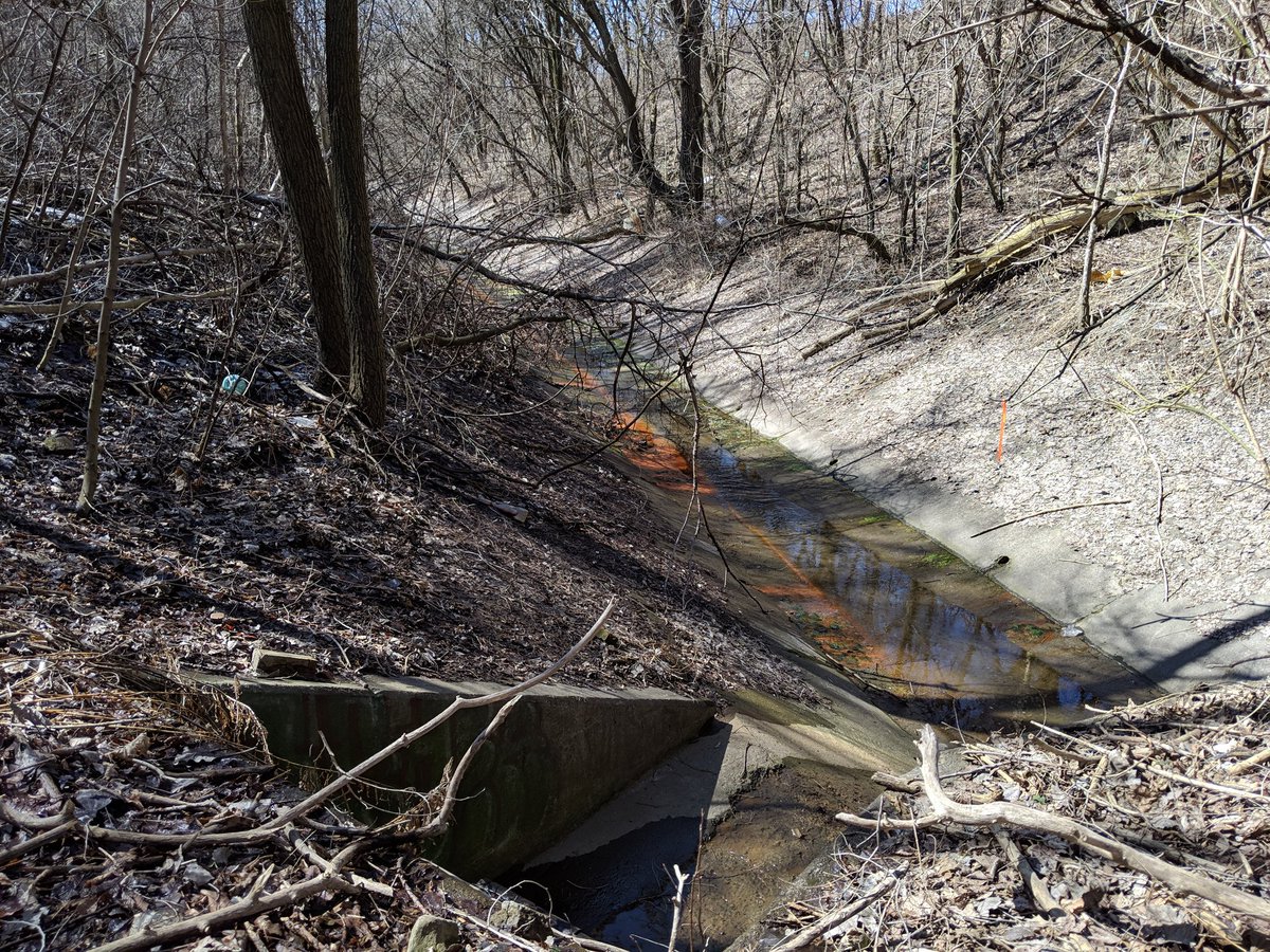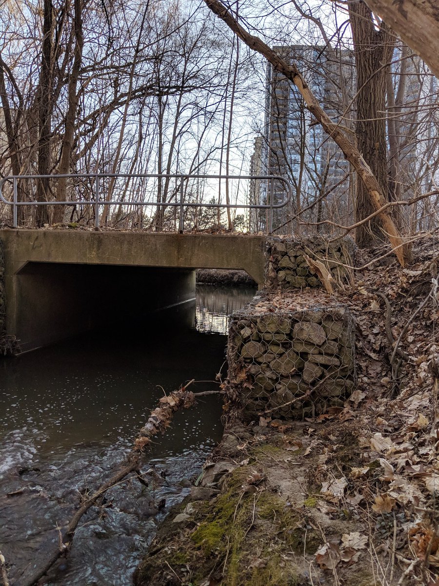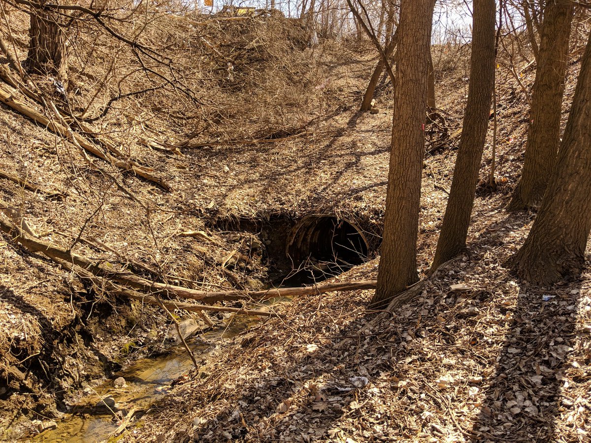 A culvert structure that seems to be placed for a trail paralleling Black Creek, yet nothing formal exists. Found the outfall for the next tributary, nothing on the surface yet.