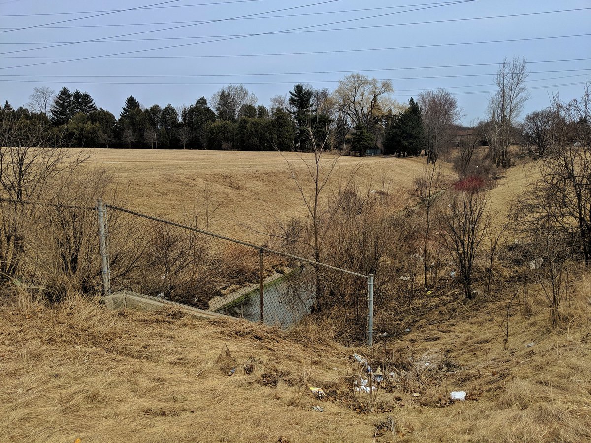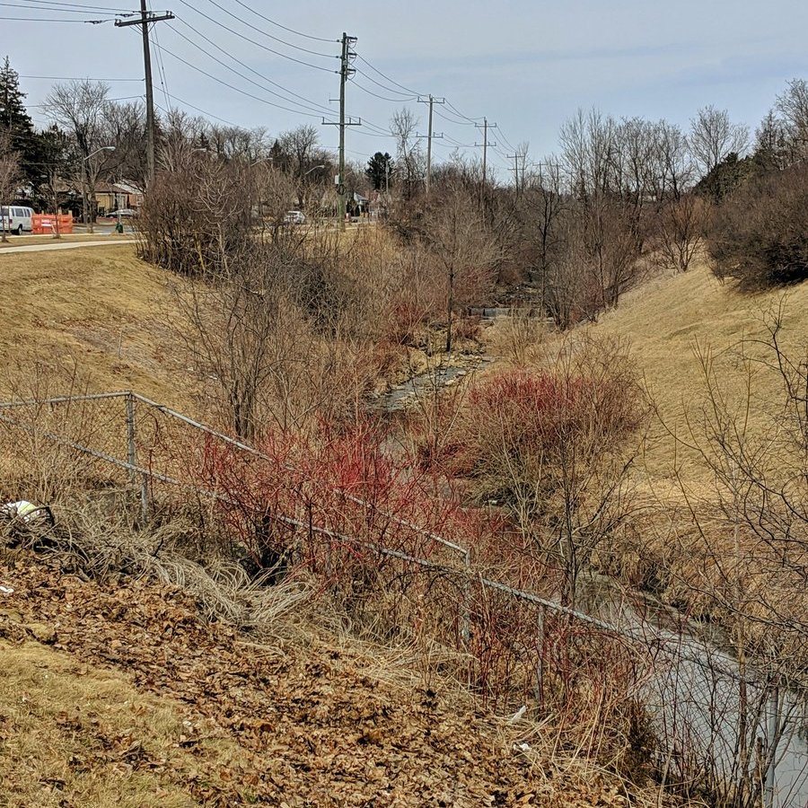 The East Highland Creek – West Branch is long gone. No sign of it. Hints of its history exist along the Finch Hydro Corridor: some kind of dry artificial pond east of Midland, and marshy conditions west of the GO Stouffville line. Other than that, nadda.