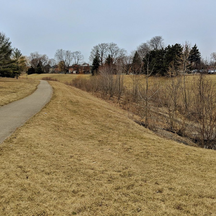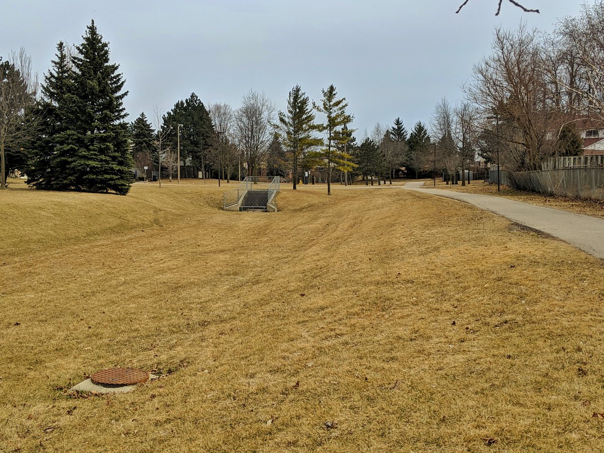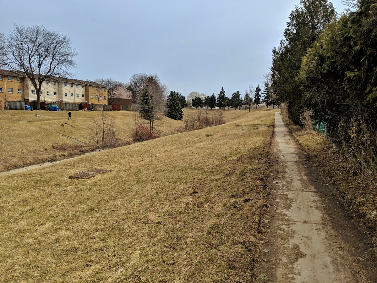 The pattern is holding. Skinny and straight channel with steep slopes, trail on one side of the tableland. Much better than what I was dealing with east of Scarborough Centre, and yet it’s upstream!