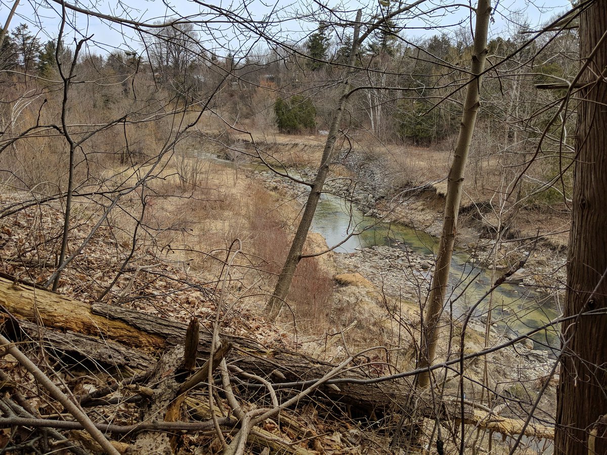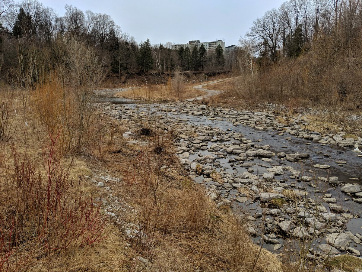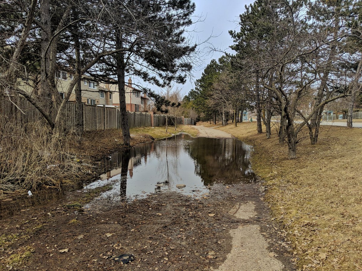 The pattern is holding. Skinny and straight channel with steep slopes, trail on one side of the tableland. Much better than what I was dealing with east of Scarborough Centre, and yet it’s upstream!