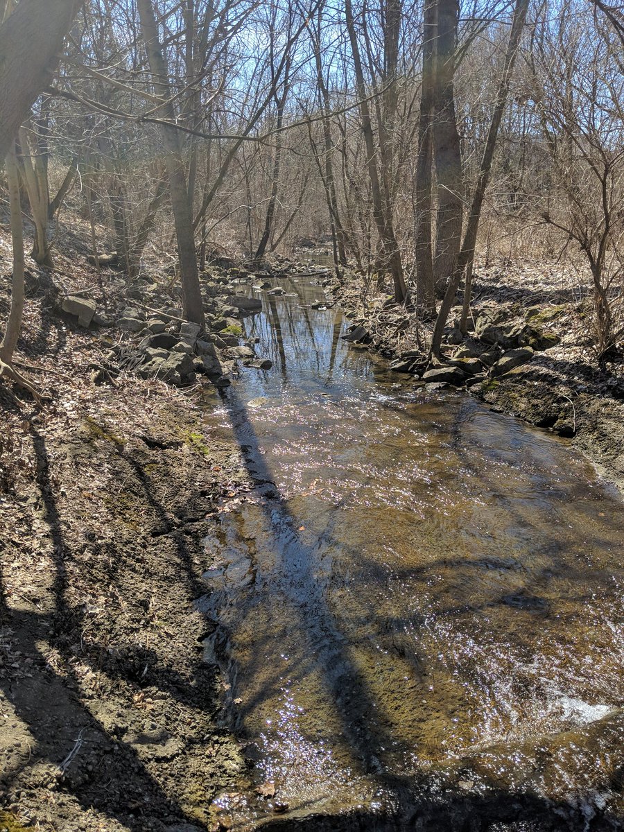 It is pretty, but there are reminders that it is an urbanized waterway, like much of the Highland Creek watershed.