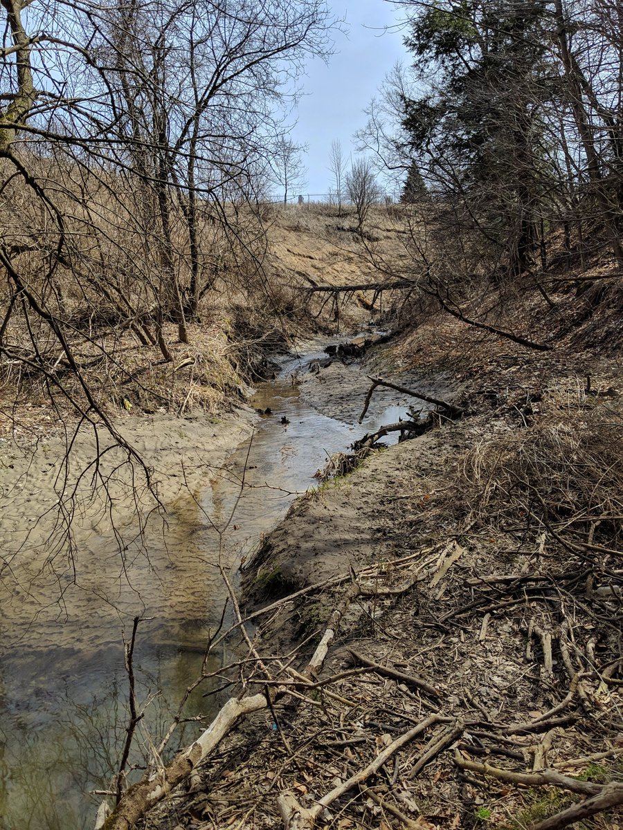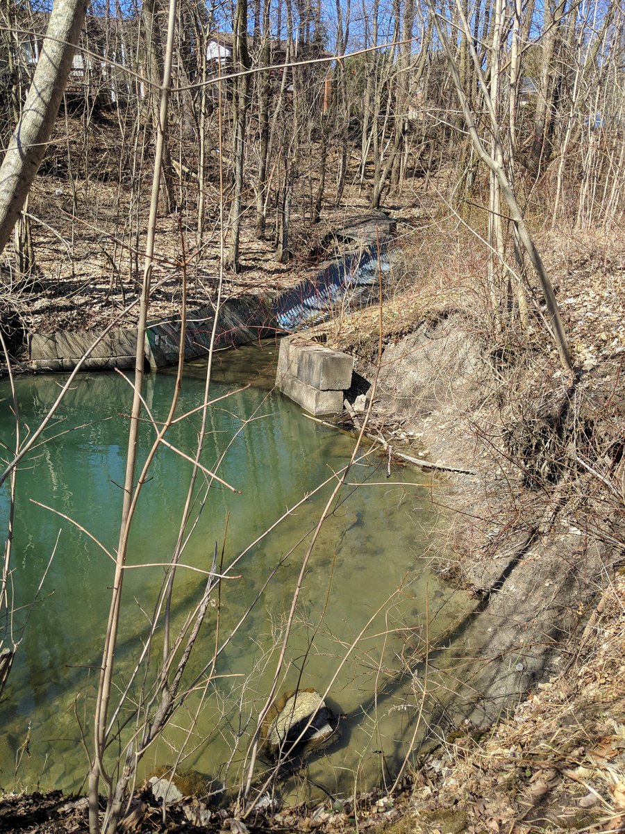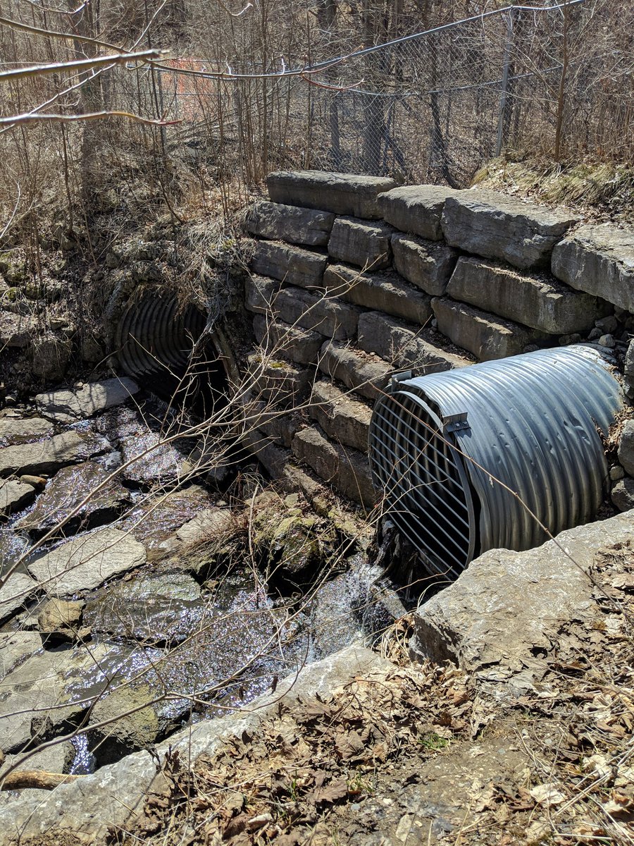 There’s a lovely ravine, but quite the modified channel. Mix of concrete and gabion walls.