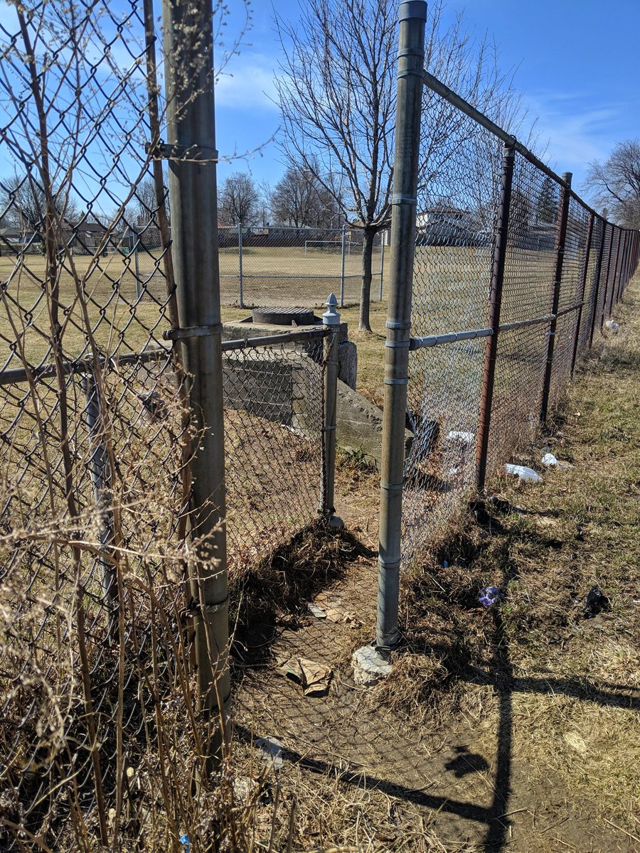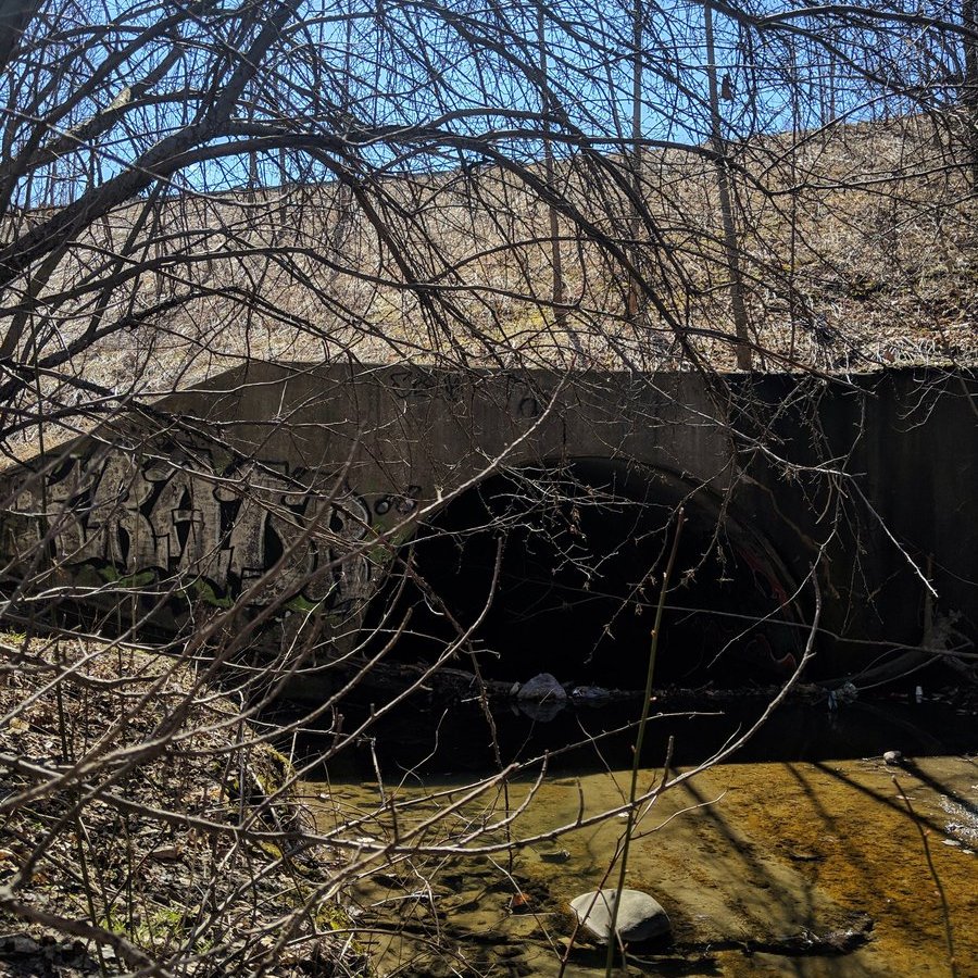 Another artificial bend and fall before the creek hits the berm supporting 6 lanes of Lawrence Avenue. Bit of a detour for me to get to the other side, the creek is relegated to a culvert that barely looks big enough for a major storm.
