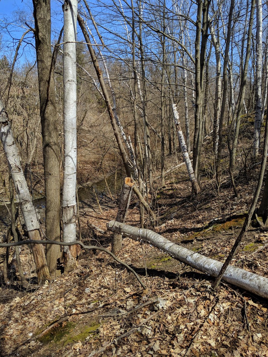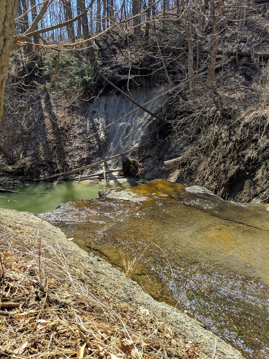 It might just be the colours left behind from winter, but as West Hill Creek reaches Lower Highland, the entire ravine looks really rough. Erosion, wind and rot seems to have taken a toll on the area.