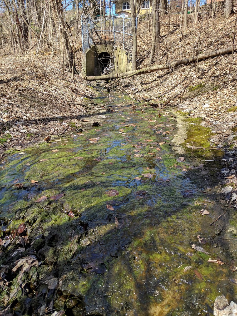 First signs were on the right track: inlets to a storm sewer below. Headwaters obliterated for single family homes and a school.