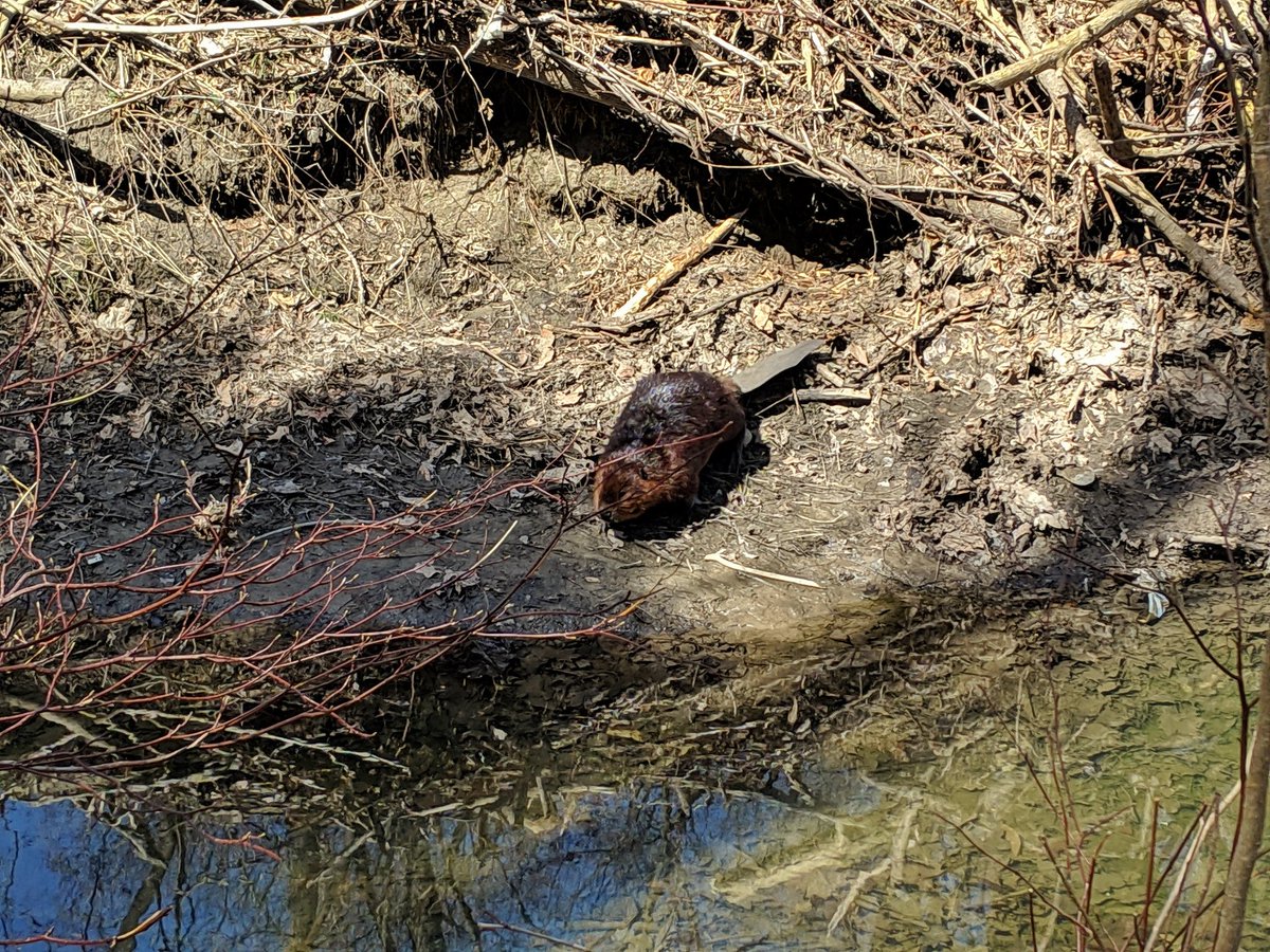 The valley wall gets really high. Then, just when I’m thinking the ravine is pretty quiet and devoid of life, I stumbled into a beaver! West Hill Creek ducks into another culvert and back out east of Beachgrove Drive.